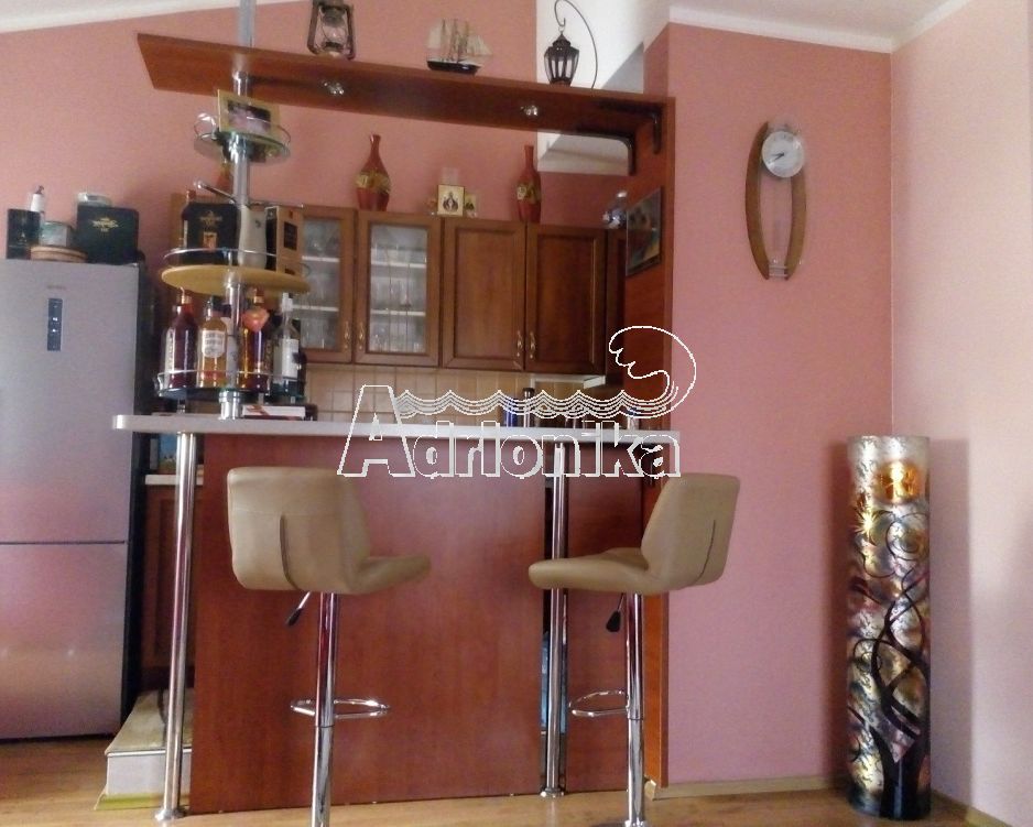 Продается двухуровневая квартира площадью 95 м2 в малоквартирном здании на третьем этаже, пригород Херцег-Нови, местечко Баошичи. Тихое и уютное место возле набережной. Рядом ресторанчики, кафе, минимаркеты, пляж. Первый уровень квартиры: большая студия с барной стойкой, кухонной зоной и столовой, также есть дровяной камин. Есть большой плазменный ТВ со спутниковой тарелкой и российскими каналами, с/у с душевой кабиной, кладовая, прихожая с встроенным шкафом. Винтовая лестница ведет на второй уровень с двумя спальнями и большим с/у с душевой кабиной, стиральной машиной. Две террасы. Все комнаты с кондиционерами, все окна снабжены защитными жалюзи. Вид из квартиры на море и горы. До берега 50 м. Есть парковка.