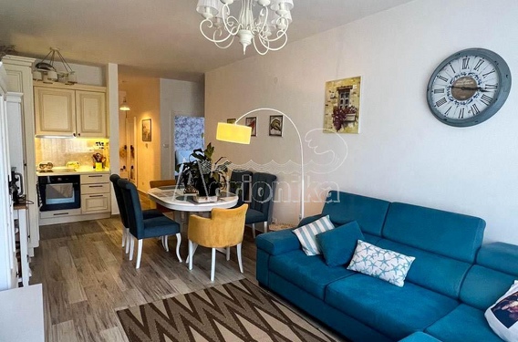 Квартира находится в среднем доме, в комплексе на первой линии с бассейном.
