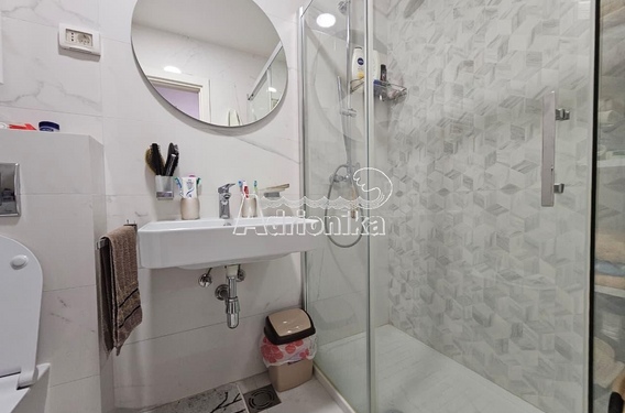 Квартира имеет очень удачную планировку: включает прихожую, ванную комнату с душевой кабиной, гостиную с кухней, террасу и спальню.