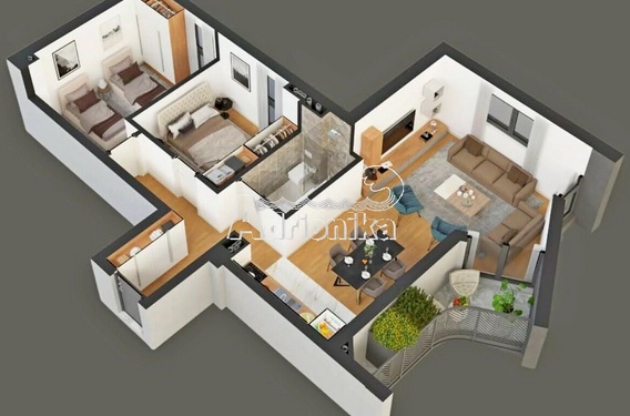 Планировка: 2 спальни + гостиная