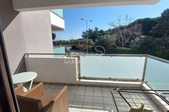 Прихожая в этой квартире центральная, обеспечивающая доступ ко всем комнатам. Квартира состоит из ванной комнаты, кухни, просторной гостиной с выходом на большую террасу и спальни с французским балконом.
