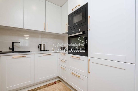 – кухня на заказ из массива дерева, полностью оборудована техникой (посудомоечная машина, холодильник, плита, духовка, микроволновая печь)