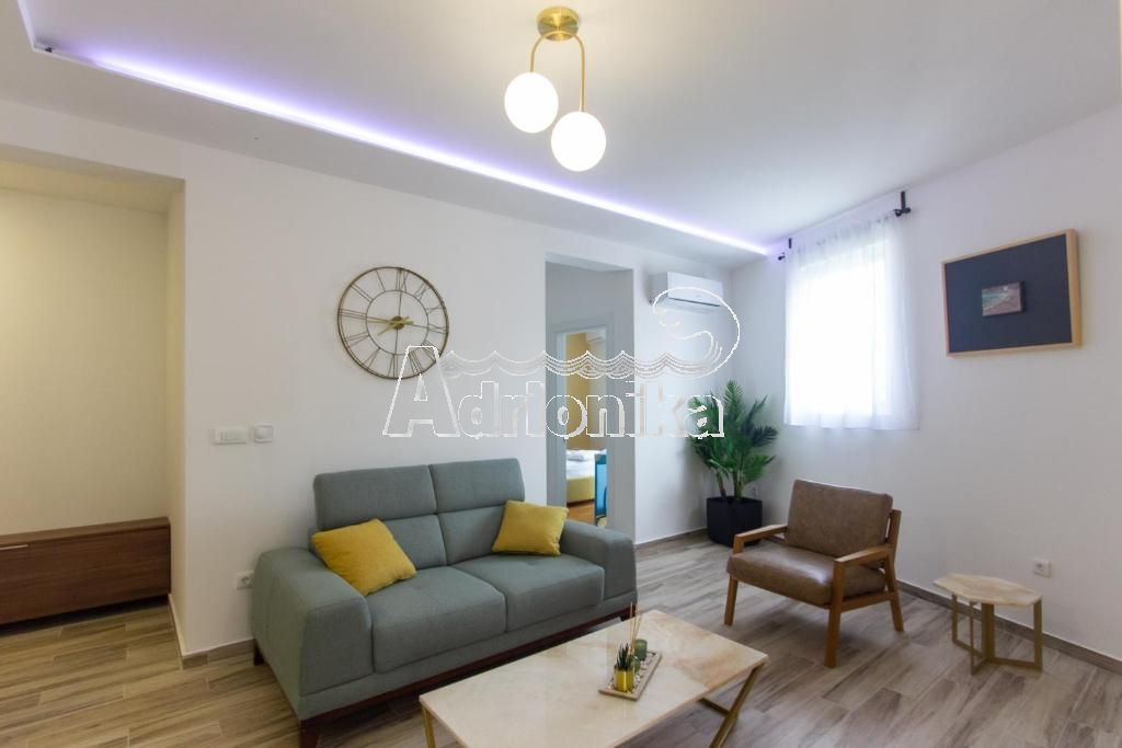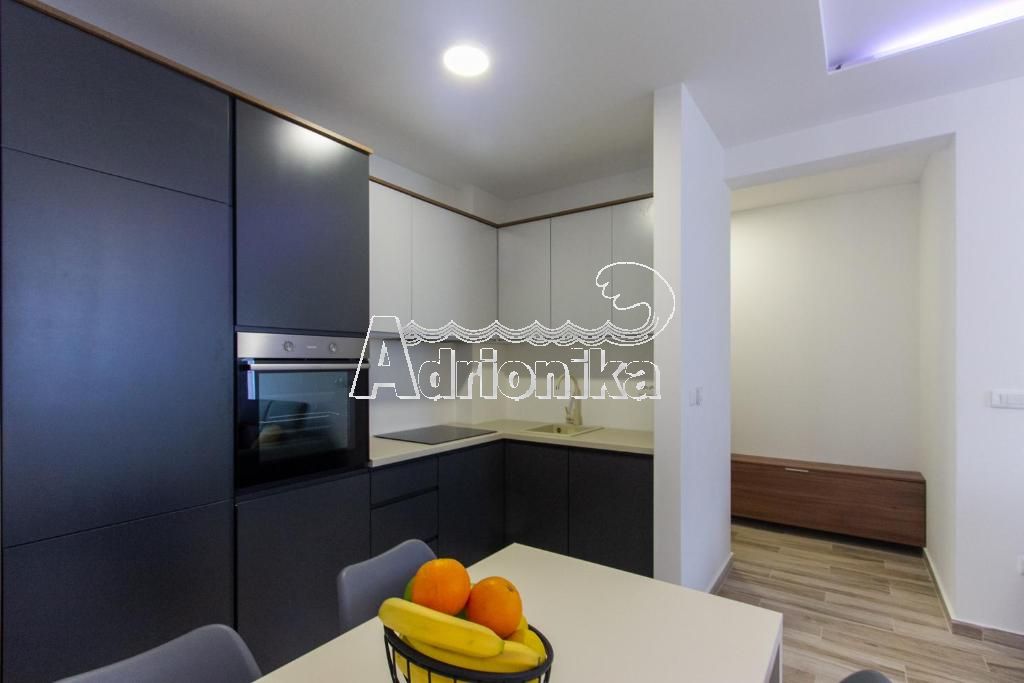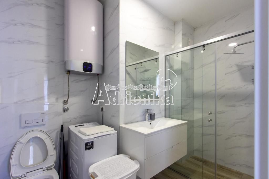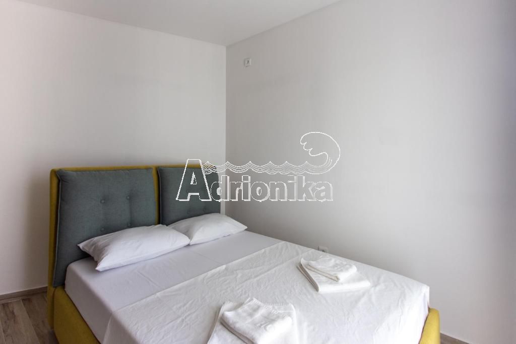 Продается пентхаус в Будве в тихом месте недалеко от моря. Квартира имеет площадь 70 м2 и расположена на 5 этаже. Планировка квартиры: гостиная со столовой, совмещенная с открытой кухней, две спальни, 2 ванные комнаты и просторный балкон. Квартира меблирована и оборудована, продается со всей мебелью. Квартира продается с эксклюзивным правом использования террасы на крыше, которая обеспечивается панорамным видом на море. Перед зданием и вокруг него есть парковка. В шаговой доступности от квартиры находятся магазины, кафе, и все другие важные учреждения. Квартира находится всего в 600 м от моря.