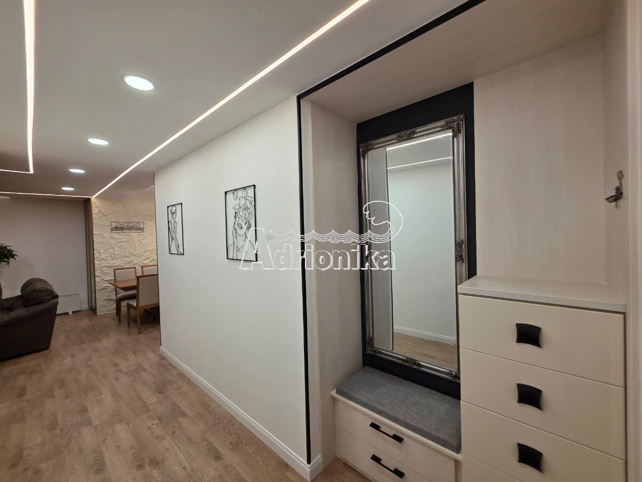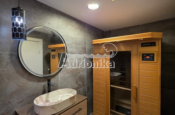Продаётся роскошная трёхкомнатная квартира в Бечичи, всего в 300 метрах от моря. Общая площадь квартиры составляет 107 м?. Квартира отличается современным дизайном, качественным оснащением и очень функциональной планировкой, что делает её отличным вариантом как для проживания, так и для инвестиций. Квартира состоит из просторной гостиной с обеденной зоной и полностью оборудованной кухней, трёх спален и двух ванных комнат. Особой ценностью объекта является частная сауна, которая обеспечивает дополнительный комфорт и пространство для отдыха. В квартире есть четыре террасы, которые обеспечивают много естественного света и приятное пространство для отдыха на свежем воздухе. В обеих ванных комнатах установлено тёплое напольное отопление. Подогрев пола и бойлеры можно контролировать через мобильное приложение. Установлены электрические шторы, а в каждой комнате есть собственный кондиционер для максимального комфорта в течение всего года. В квартире выполнены подвесные потолки, а в гостиной установлена surround-аудиосистема, обеспечивающая полноценное звуковое сопровождение. Кухня полностью оснащена всей необходимой техникой. Квартира продаётся полностью меблированной со всей мебелью и техникой, что позволяет сразу заселиться или сдавать её в аренду без дополнительных вложений. Благодаря отличному расположению — всего в 300 метрах от моря и рядом с пляжем, ресторанами и всей необходимой инфраструктурой — эта недвижимость является отличным выбором как для проживания, так и для инвестиций.