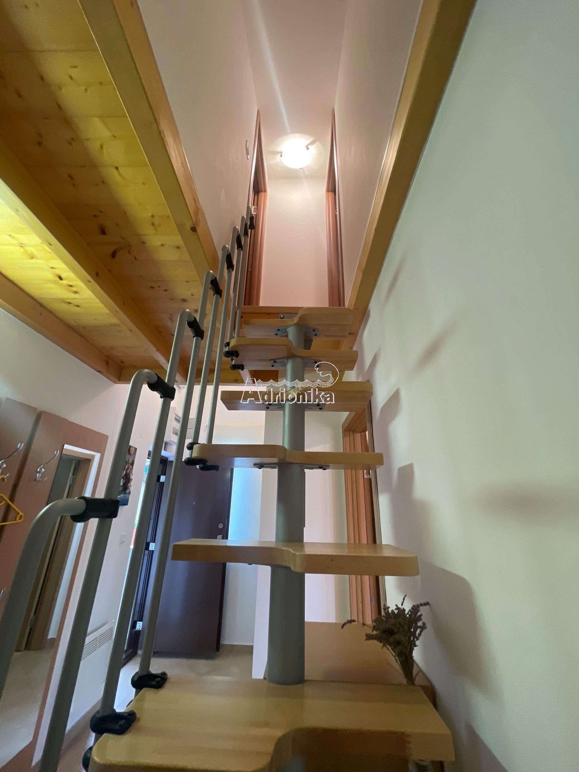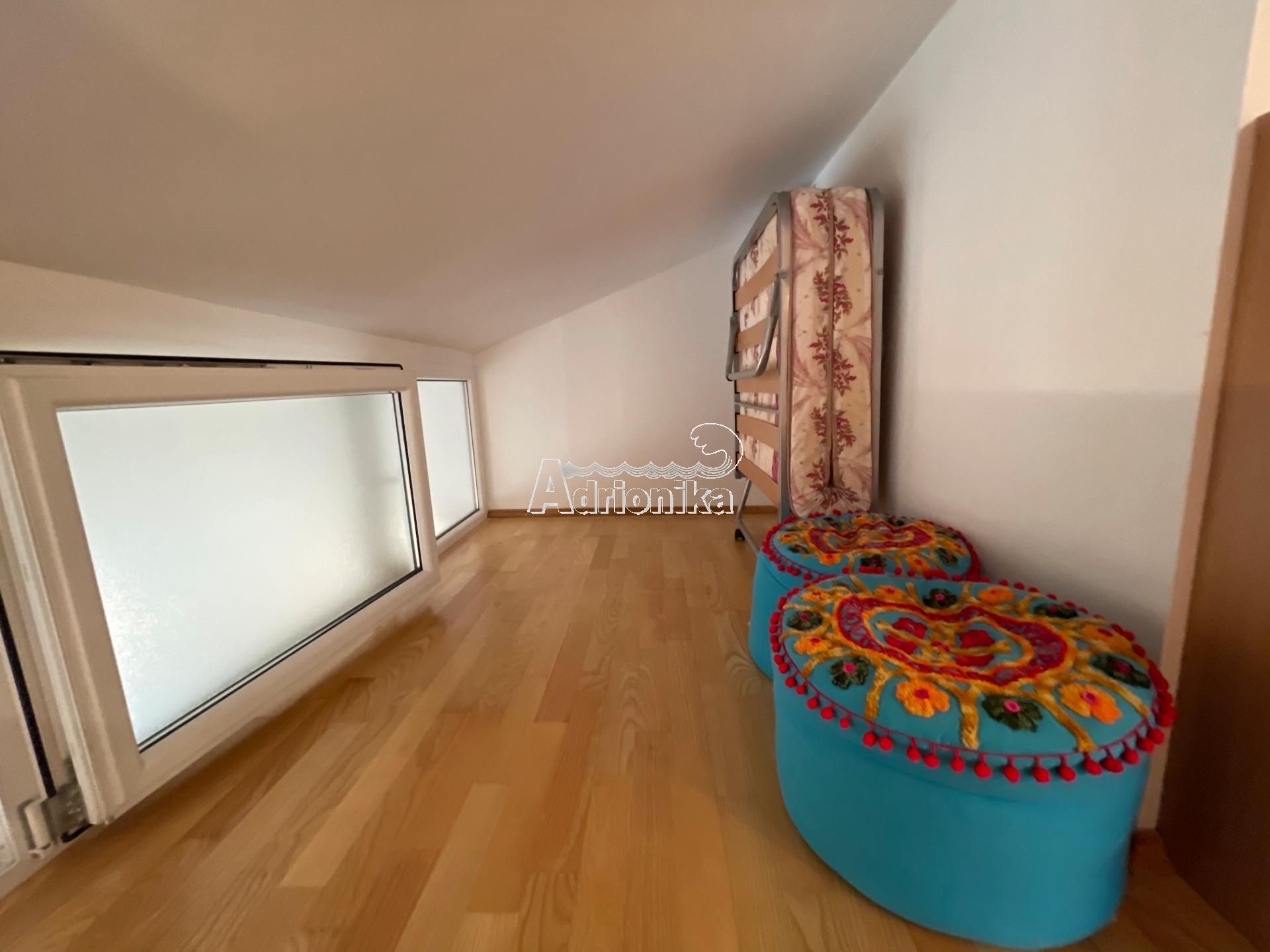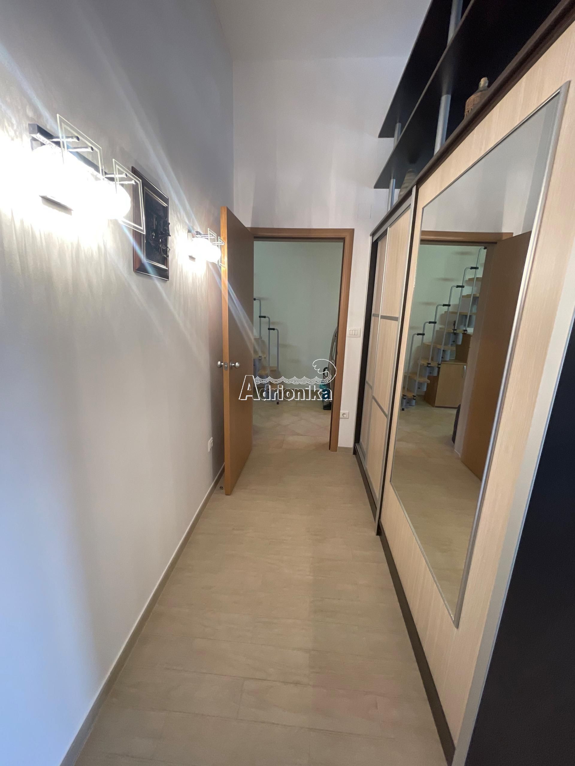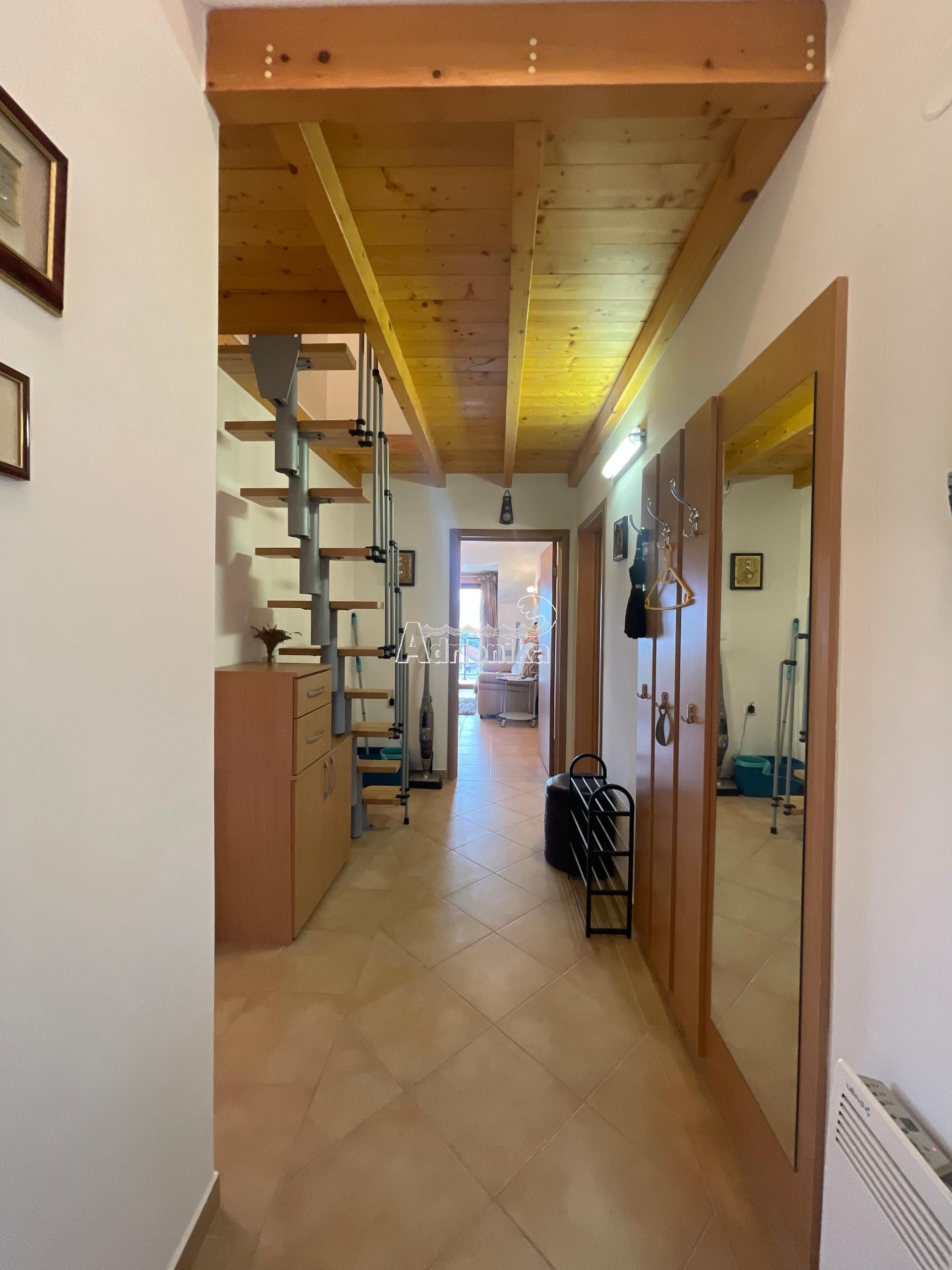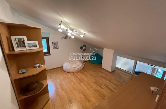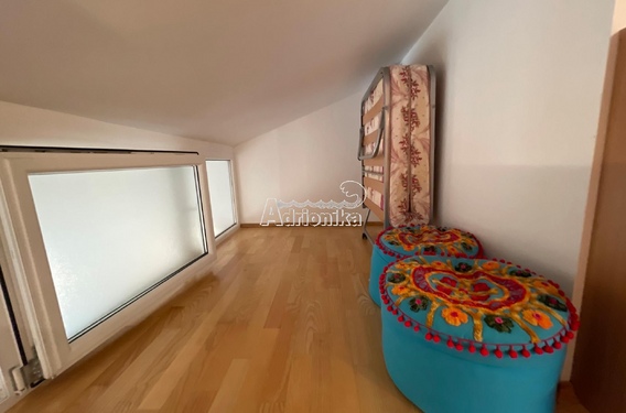 Эта квартира расположена в жилом доме с девятью квартирами. Площадь этой квартиры 80м2. Галерея является дополнительной и незарегистрированной, имеет площадь 30 м2. Вместе с покупкой этой квартиры вы получаете гараж площадью 29 м2.