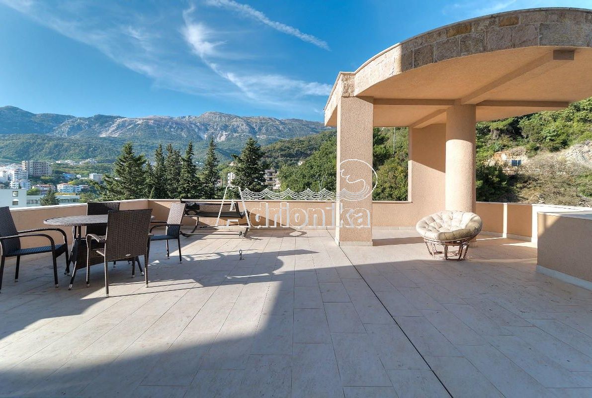 Квартира с тремя спальнями и очень просторной террасой в Будве
