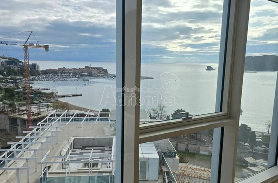 Эксклюзивная трехкомнатная квартира в здании "Tre Canne", Будва, представляет собой роскошную резиденцию на тринадцатом этаже.
