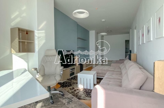 Полностью меблированная квартира площадью 77м2 (71 м2 жилая площадь + терраса) включает в себя две спальни, открытую гостиную с обеденной зоной и отдельной кухней, одну ванную комнату и террасу с видом на море.