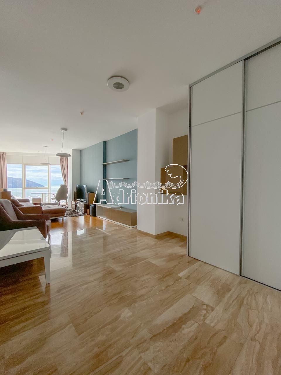 Эксклюзивная трехкомнатная квартира в здании "Tre Canne", Будва, представляет собой роскошную резиденцию на пятом этаже.