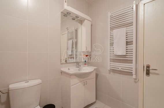 Она расположена на пятом этаже, в здании есть лифт. Расположение является большим преимуществом, поскольку все объекты инфрастируктуры расположены в непосредственной близости, включая супермаркет, расположенный на первом этаже здания.