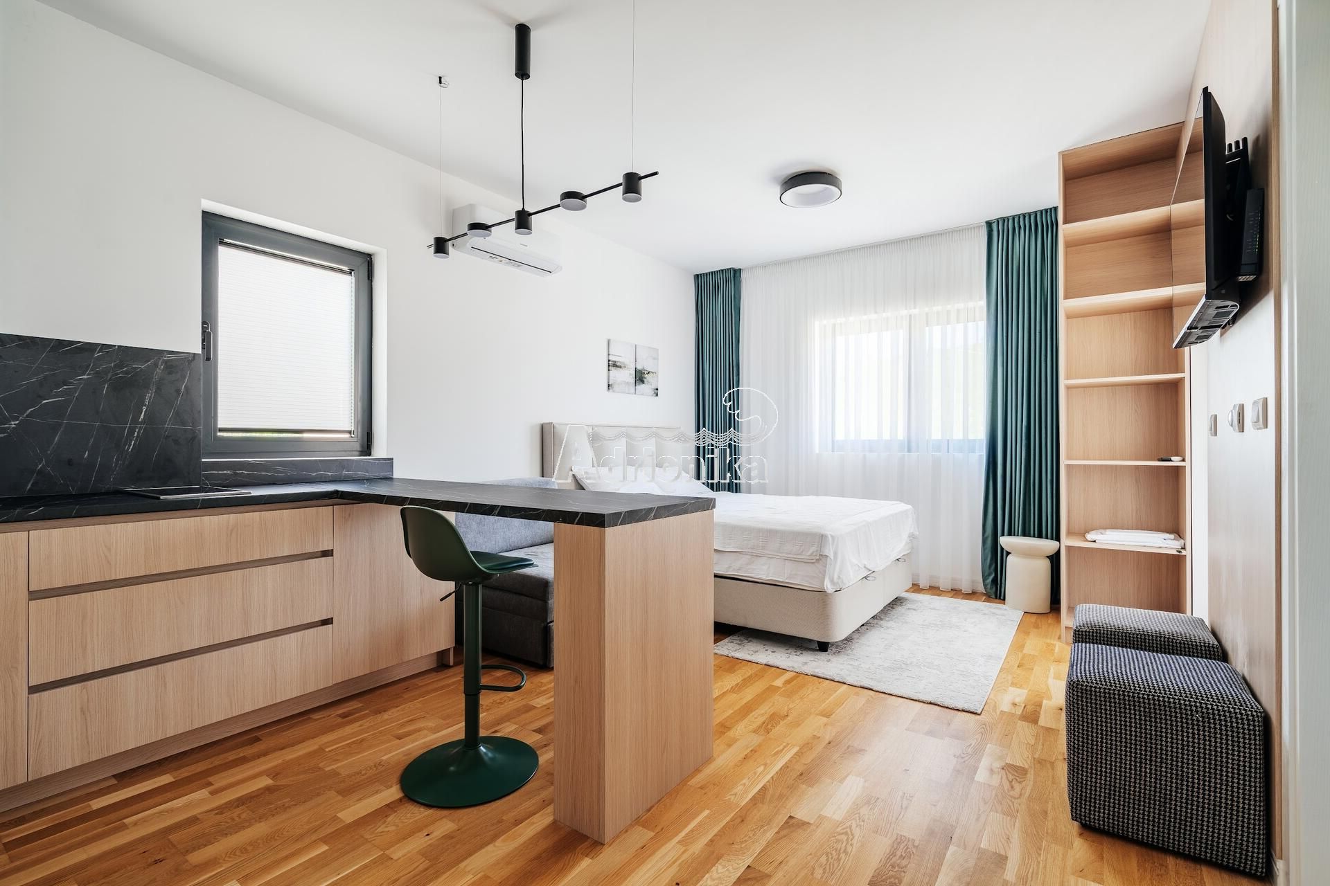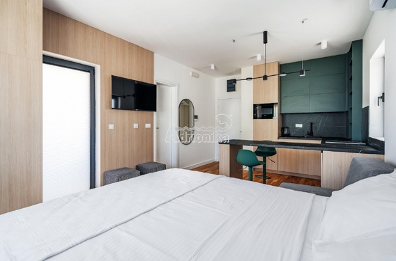Продаётся современно оборудованная студия в новом жилом комплексе с бассейном в районе Ивановичи, Бечичи.