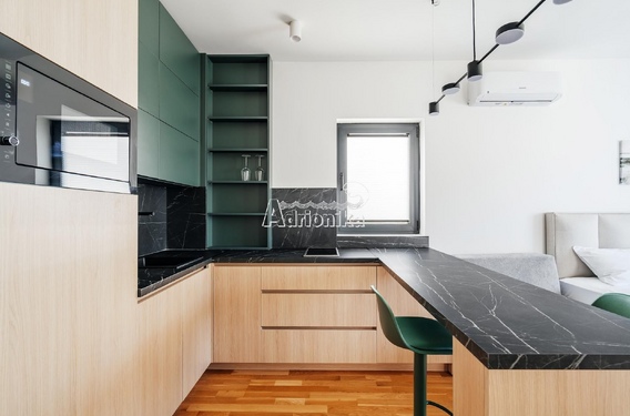 Пространство квартиры максимально эффективно использовано, интерьер выполнен в элегантном и функциональном стиле, квартира полностью оснащена всей необходимой бытовой техникой.