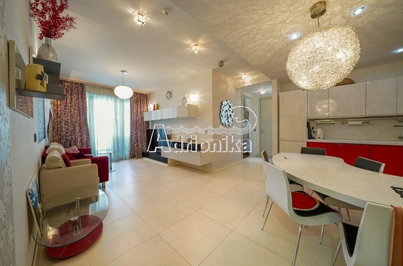 Структура: большая кухня-гостиная, 2 спальни, 2 санузла - один с душевой кабиной, второй с ванной с гидромассажем.