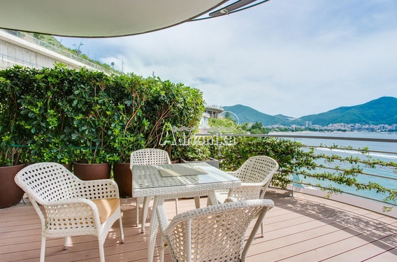 Продается квартира класса люкс в комплексе в Будве всего в 10 метрах от моря. Этот комплекс расположился на полуострове Завала, в самом сердце оживлённой Будванской Ривьеры. Отсюда открываются потрясающий вид на море, остров Святого Николая и Старый город Будва. Квартира находится на тертьем этаже четырехэтажного здания. Жилая площадь квартиры составляет 156 м2, а площадь террасы – 130 м2. Планировка квартиры: кухня, совмещенная с гостиной и столовой, две спальные комнаты, две ванные комнаты, коридор, кладовka и терраса с прекрасным видом на море и старый город. Квартира полностью меблирована и оборудована системами обогрева и кондиционирования, системой умный дом, пожарной сигнализацией. На территории комплекса находятся: ресторан, кафе, детский сад и школа, пляж, причал для лодок и яхт.