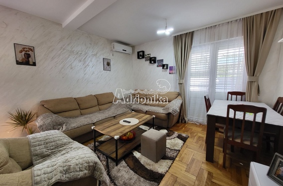 Продается трехкомнатная квартира в Будве в тихом месте. Квартира имеет площадь 49 м2 и расположена на 1 этаже. Планировка квартиры: гостиная со столовой, совмещенная с открытой кухней, две спальни, две ванные комнаты и просторная терраса. Квартира меблирована и оборудована и продается со всей мебелью. Рядом со зданием есть общественная парковка. В шаговой доступности от квартиры находятся магазины, кафе, рестораны, почта, автовокзал и все важные учреждения. Квартира находится всего в 1000 м от моря.