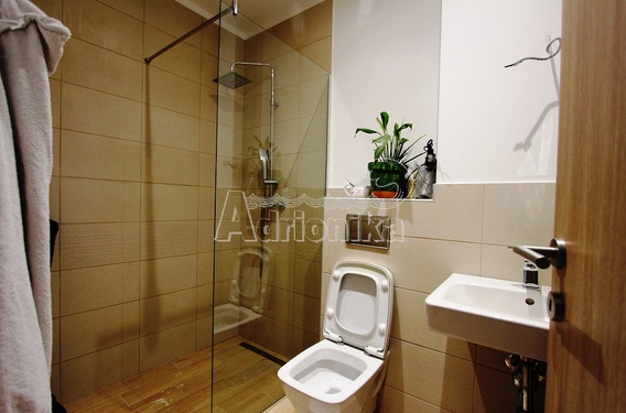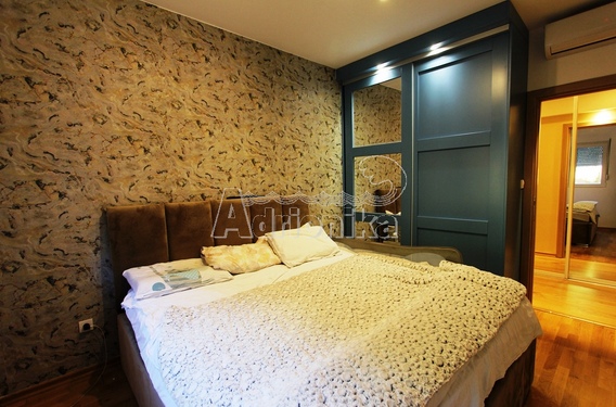 Продается квартира с тремя спальнями в новом комплексе в Будве. Квартира имеет площадь 86 м2 и расположена на 4-м этаже здания, в которого есть 2 лифта. Планировка квартиры: гостиная совмещенная с кухней и столовой, три спальни, два санузла и терраса. Квартира полностью меблирована и оборудована и продается со всей мебелью. Во всех номерах есть кондиционер. С террасы открывается вид на внутренний двор комплекса. В шаговой доступности от квартиры магазины, кафе, рестораны, почта, автовокзал. Квартира находится всего в 1000 м от моря.