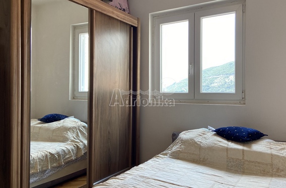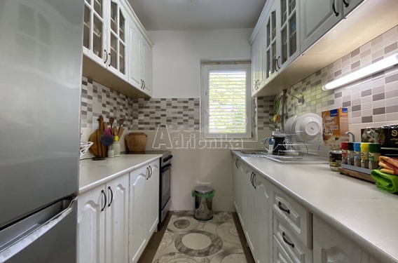 Продается квартира с двумя спальными комнатами в Будве в тихом месте. Квартира имеет площадь 75 м2 и расположена на 5 этаже. Планировка квартиры: гостиная со столовой, совмещенная с открытой кухней, две спальни, две ванные комнаты и просторный балкон с видом на море и город. Квартира меблирована и оборудована, продается со всей мебелью. В шаговой доступности от квартиры находятся магазины, кафе, рестораны, почта, автовокзал и все другие важные учреждения. Квартира находится в 1700 м от моря.