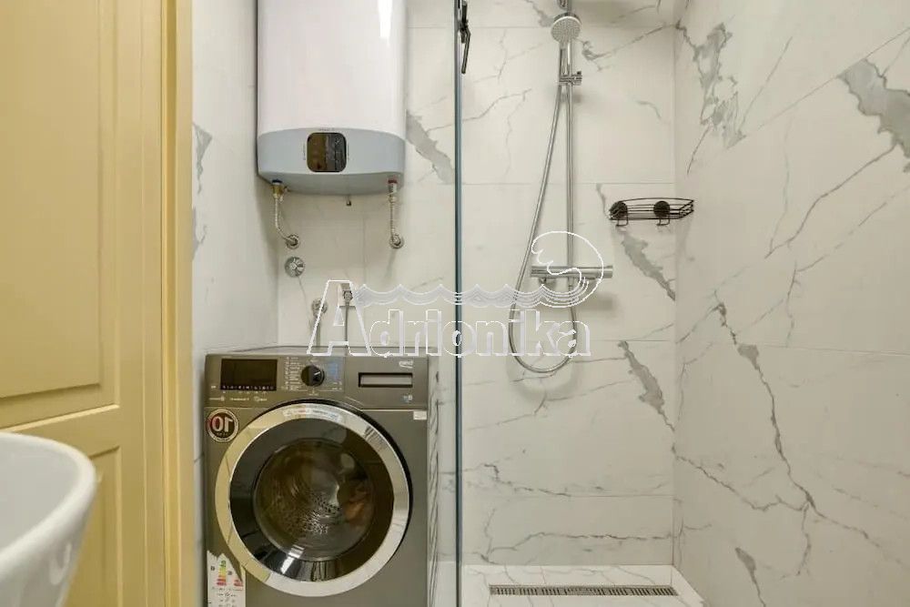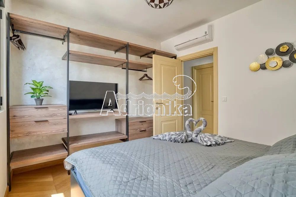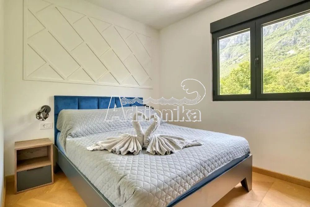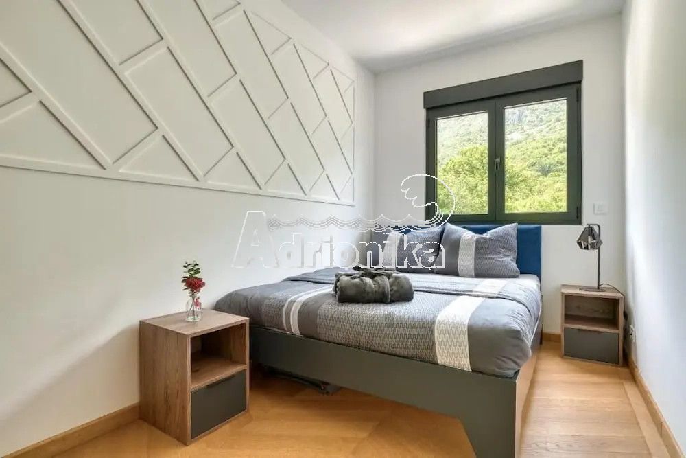 Меблированная 3-комнатная квартира в комплексе с бассейном в Близикуче. Панорамный вид на Свети Стефан, тихая локация, подходит для проживания и аренды. Планировка: прихожая, 3 спальни, 2 санузла, кухня-гостиная, терраса. Открытая парковка, бассейн работает с мая по сентябрь.