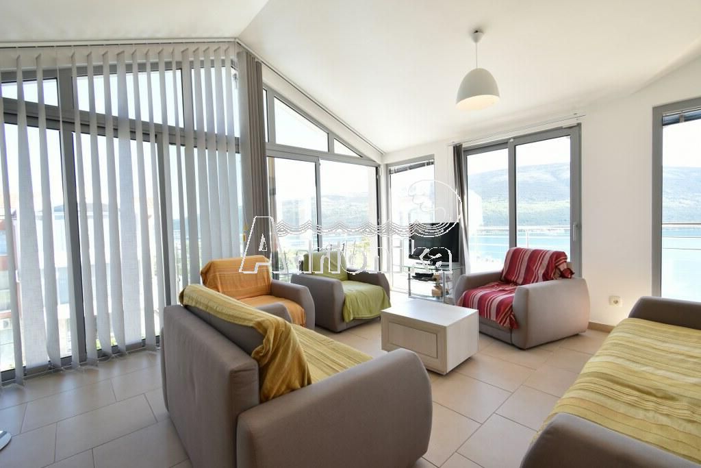 Квартира расположена на верхнем этаже жилого дома, который является частью современного комплекса. Благодаря своему дизайну, квартира имеет отличный вид на море почти из каждого угла. Окна от пола до потолка гарантируют достаточное количество солнца и воздуха.
