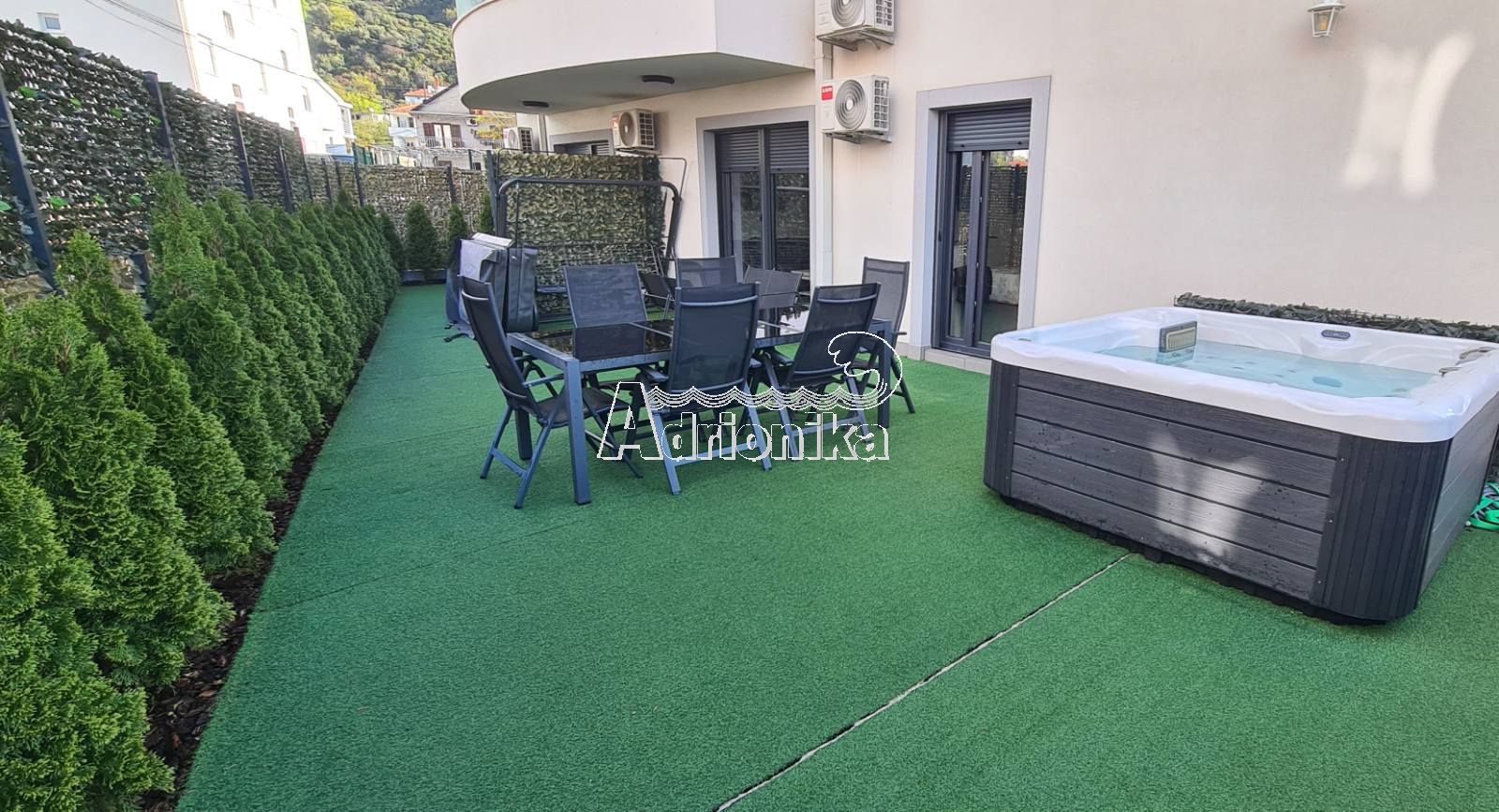 Продается красивая двухкомнатная квартира с видом на море в Дженовичи, Котор. Эта современная квартира имеет одну спальню, кухню открытого типа со столовой и гостиной и две террасы. На благоустроенной террасе вы можете насладиться видом и расслабиться в джакузи. Квартира 40м2 и зеленая терраса 43м2. В этом доме есть все необходимые электроприборы, шкафы, мебель и кондиционер. Во дворе дома есть охраняемая парковка. Расположение этой квартиры отличное, помимо красивых окрестностей и вида на Боко-Которский залив, у вас будет все необходимое для отдыха и развлечений, рестораны, рынки и торговые центры.
