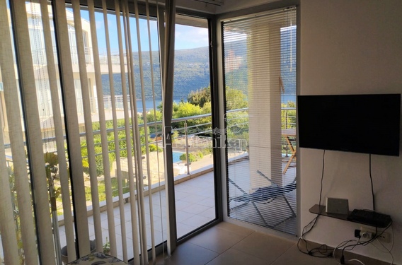 Продается современные квартира с великолепным видом на море в новом эксклюзивном жилом комплексе Акация Хилл, расположенном над деревней Дженовичи, недалеко от Херцег Нови. На террасе комплекса есть большой плавательный бассейн. Комплекс расположен внутри охраняемой территории и окружен ландшафтными садами. На продажу предлагается квартира на втором этаже площадью 48м2. Интерьер квартиры светлый, с открытой планировкой и раздвижными дверями, которые ведут на частную террасу. Квартира отделана качественными материалами, общие зоны пользования также на высоком уровне. Имеется телевидение, широкополосный интернет, а также система кондиционирования воздуха. Во дворе имеется выделенная парковка, а также игровая зона для детей.