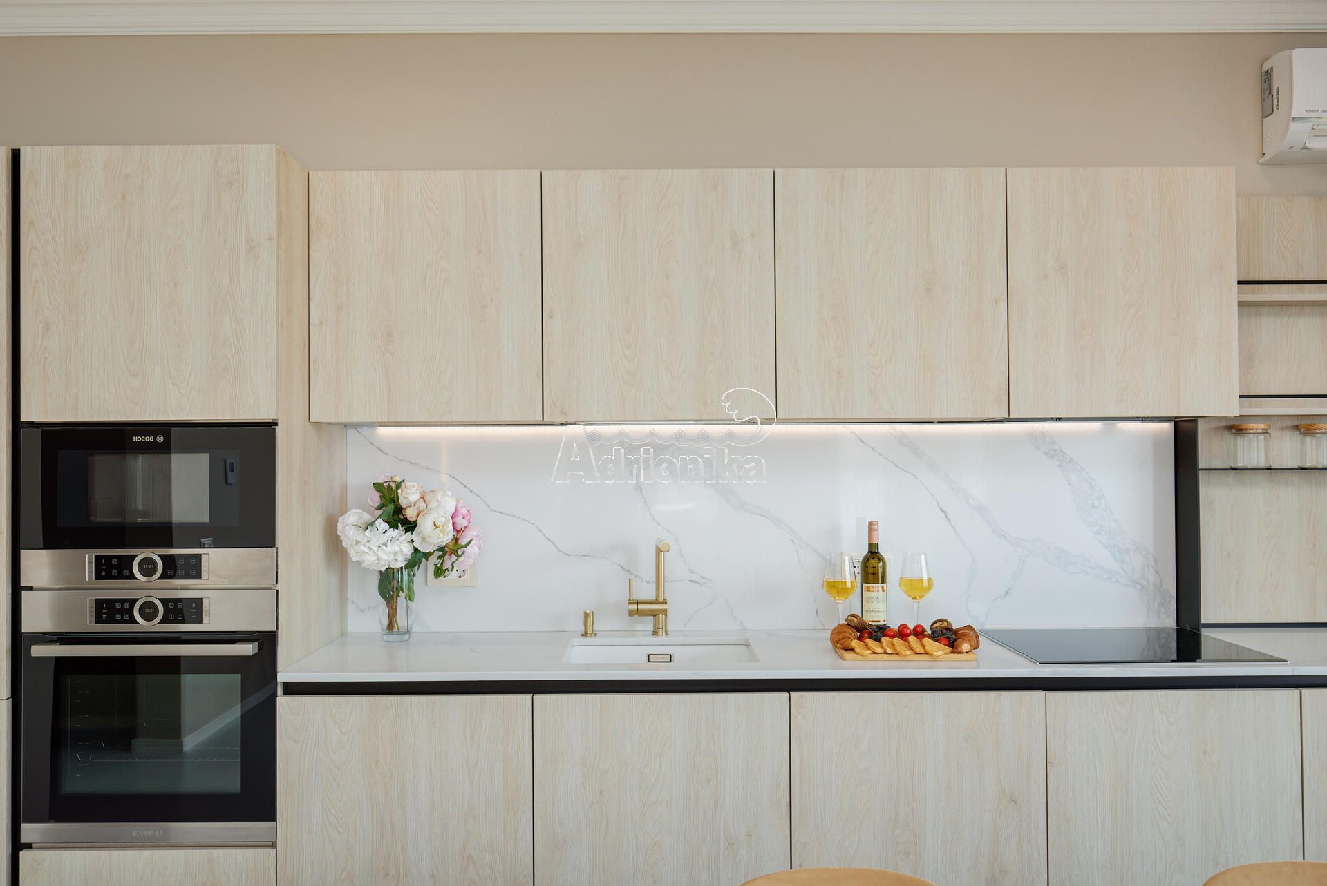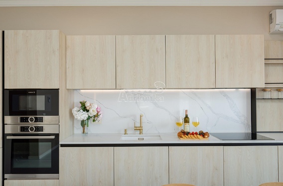 Квартира продается с мебелью, включая высококачественную встроенную кухню, обеденный стол и стулья, диваны в гостиной, телевизор, кровати во всех спальнях, шкафы в прихожей и спальнях, а также стильное освещение во всех комнатах.