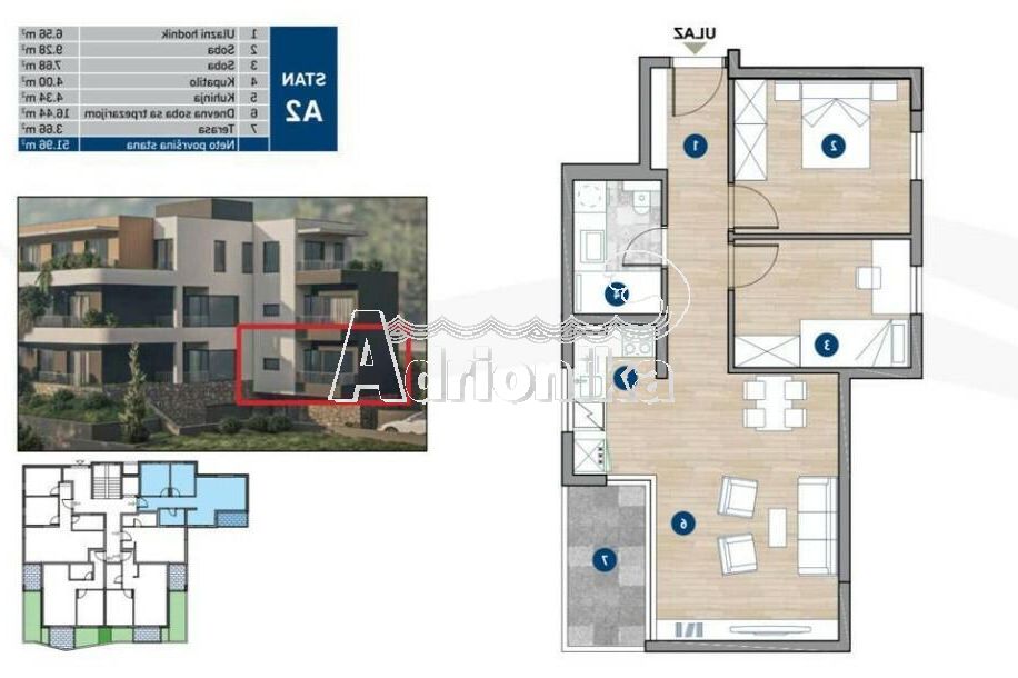 Квартира A2: площадь 51,96 м? – две спальни (цокольный этаж) – 214.990 евро
