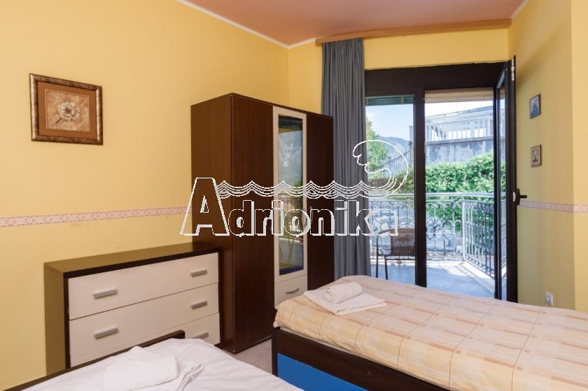 Продается трехкомнатная квартира в Доброте в комплексе с бассейном у моря. Квартира имеет площадь 85 м2 и расположена на 2 этаже. Планировка квартиры: гостиная со столовой, совмещенная с открытой кухней, две спальни, ванная комната и две террасы. Квартира меблирована и оборудована, продается со всей мебелью. С террасы открывается прекрасный вид на Которский залив. В пешей доступности от квартиры находятся магазины, кафе, рестораны и все другие важные учреждения. Квартира расположена всего в 50 м от моря.