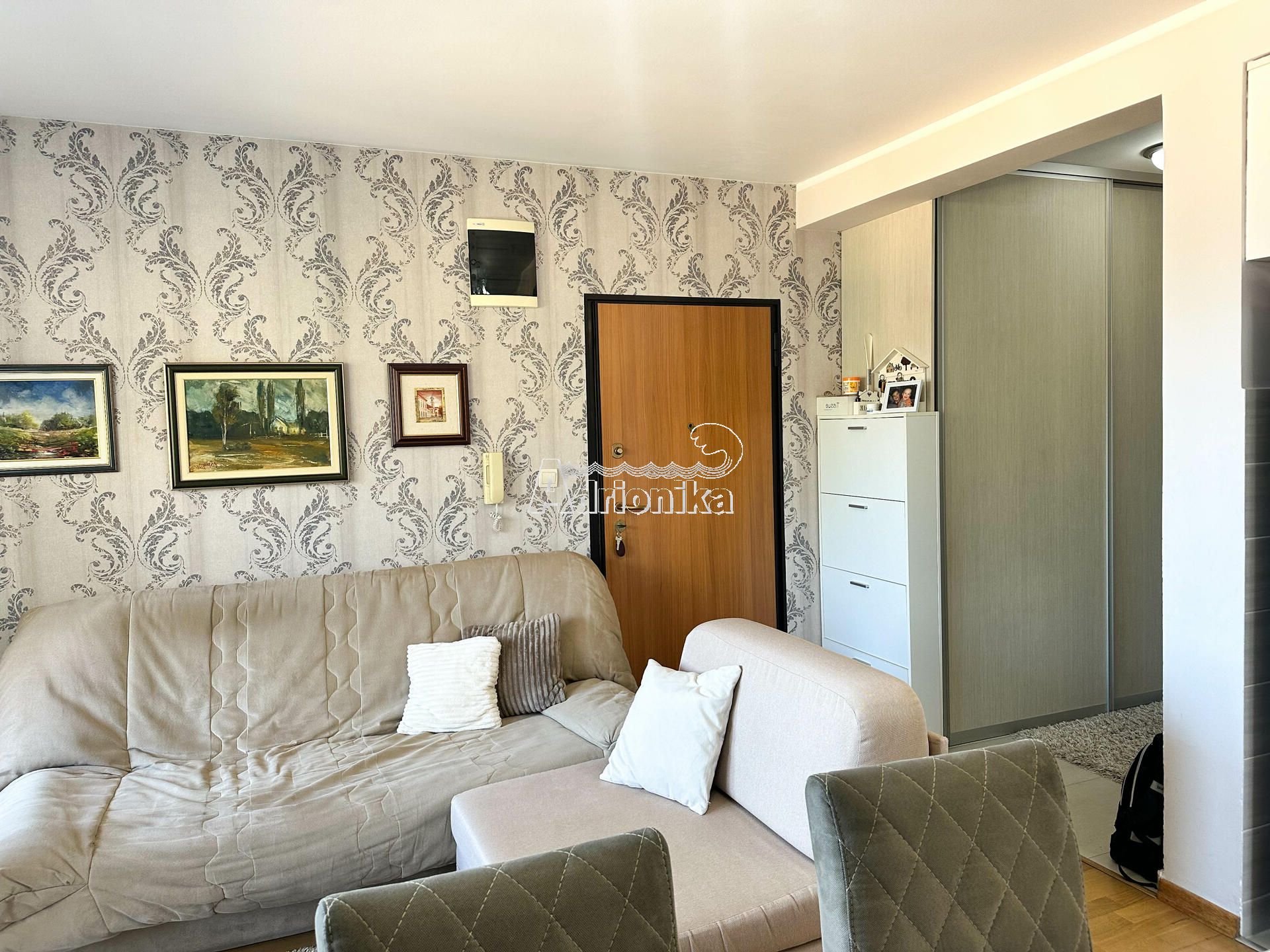 Квартира расположена на первом этаже небольшого здания и имеет площадь 50м2.