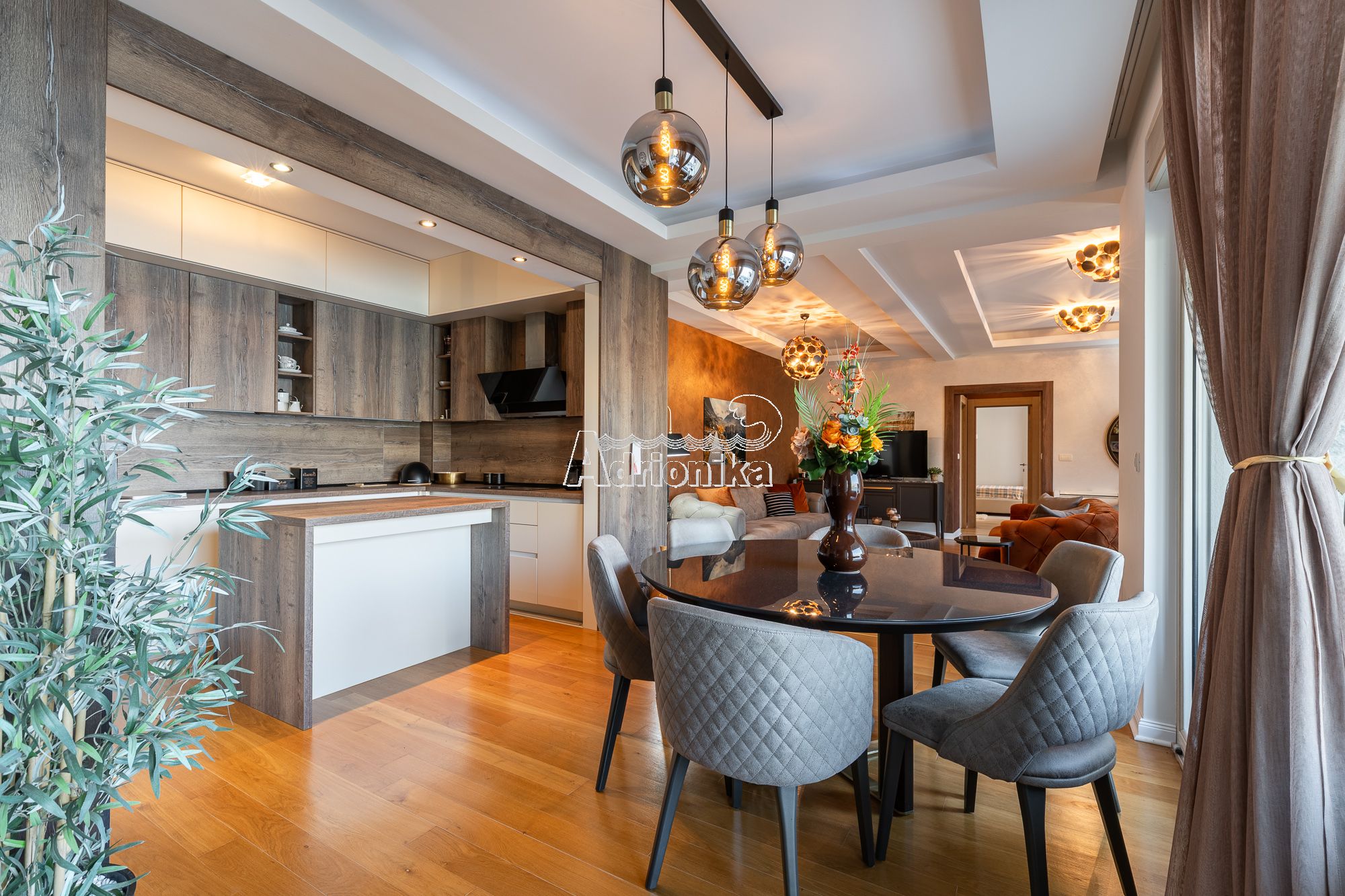 Продается 3 квартиры класса люкс в комплексе, окруженном лесами. Одна квартира двухуровневая, остальные - один уровень. Также одна из квартир имеет полную меблировку. Каждая квартира имеет шикарный вид на море, городок Пераст и два острова напротив. Рядом расположен пляж и причал для яхт. Комплекс имеет панорамный лифт, который имеет спуск к морю. Квартиры оборудованы материалом высокого качества: • интерьер деревянных и паркетных полов из дуба • система отопления-охлаждения; • пол с подогревом в ванных комнатах • теплоизоляция • высокое качество керамики; • ванная комната с Villeroy & Boch; • подвесные потолки, гараж и панорамный лифт.