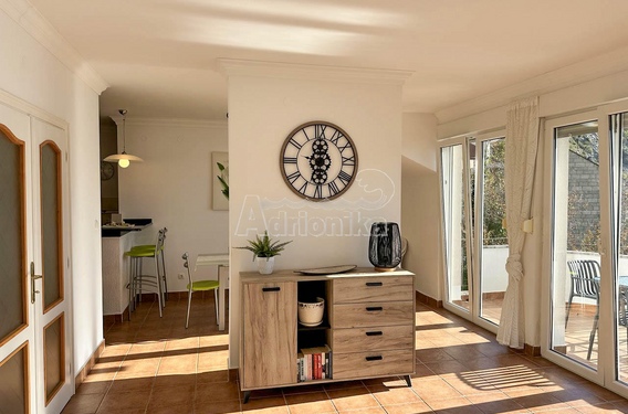 Квартира очень светлая и проветриваемая благодаря большому количеству окон и нескольким выходам на террасу. Из гостиной, столовой и кухни открывается вид на море, а из спален — на холмы.