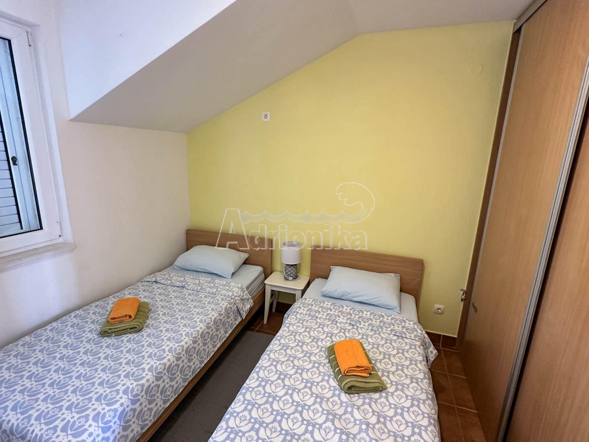 Квартира находится в небольшом жилом доме, всего в 20 метрах от моря! Расположена на втором, последнем этаже здания, общей площадью 77 м?. Имеет собственное парковочное место.