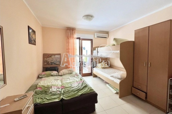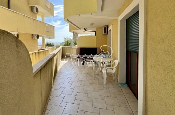 Структура квартиры - прихожая, гостиная/кухня, ванная и спальня и просторная терраса, с которой есть небольшой вид на море. Квартира расположена в тихом, живописном районе города.