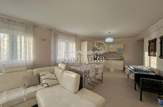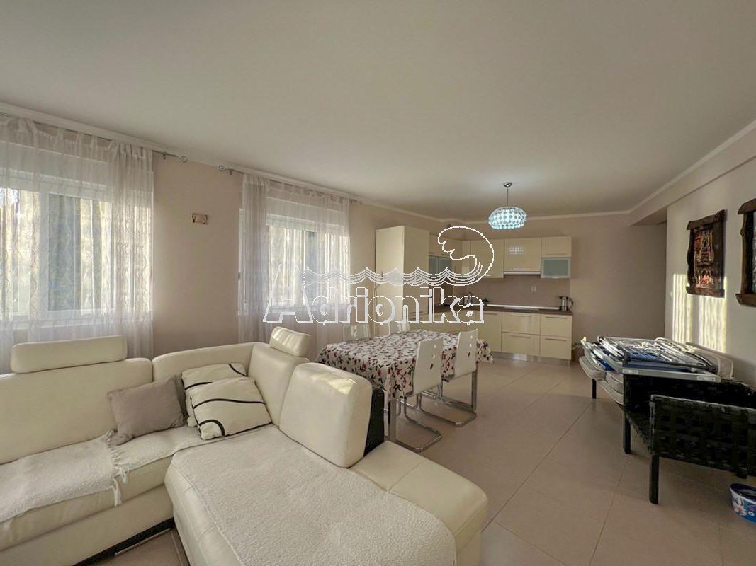 Квартира расположена в новом здании, в курортном поселке Рафаиловичи, который славится своим пляжем и рыбными ресторанами на первой линии моря.