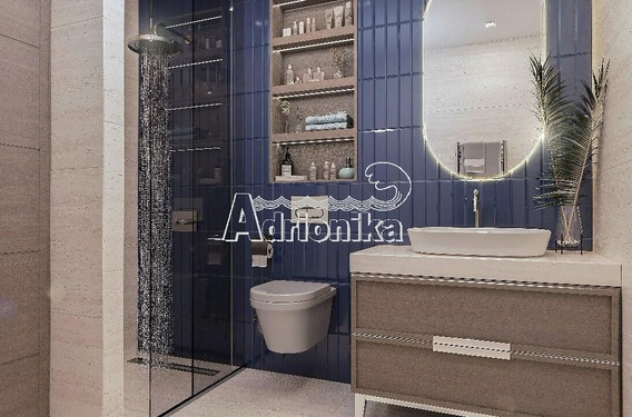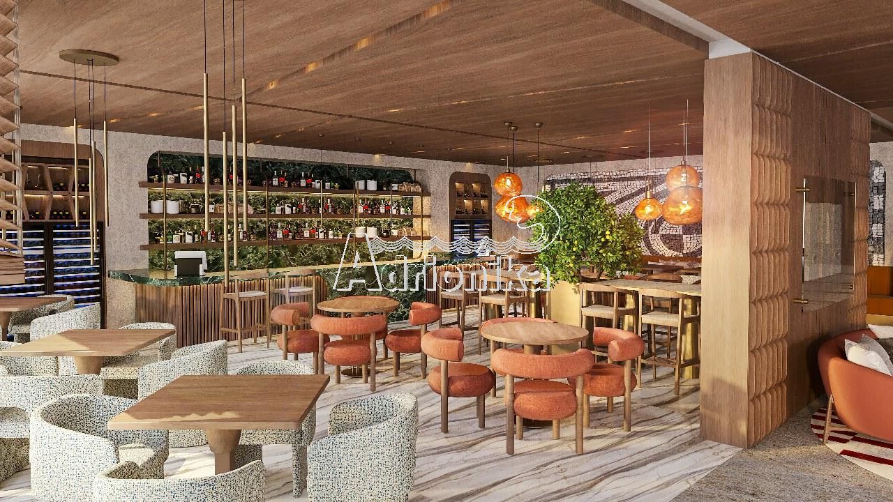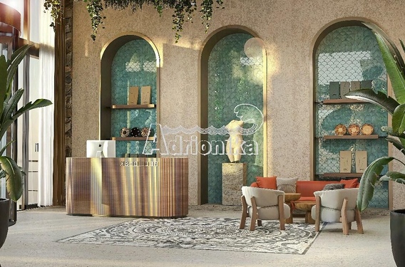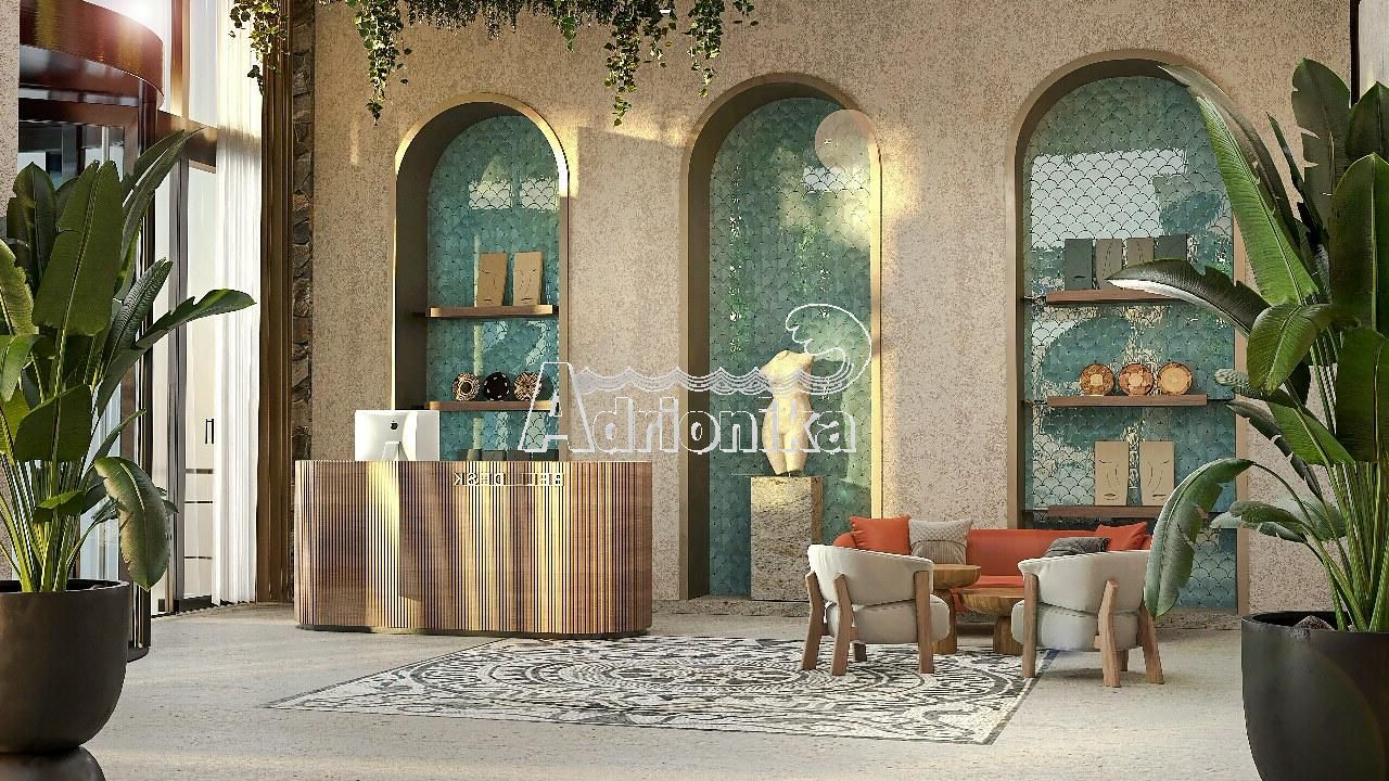 Каждый апартамент полностью оборудован высококлассной фурнитурой, выполненной в нейтральных тонах бежевого, оливкового и каменного цветов, с деревянными акцентами, которые гармонируют с природным окружением. В ванных комнатах установлены отдельно стоящие ванны, двойные умывальники и отделка из мрамора.
