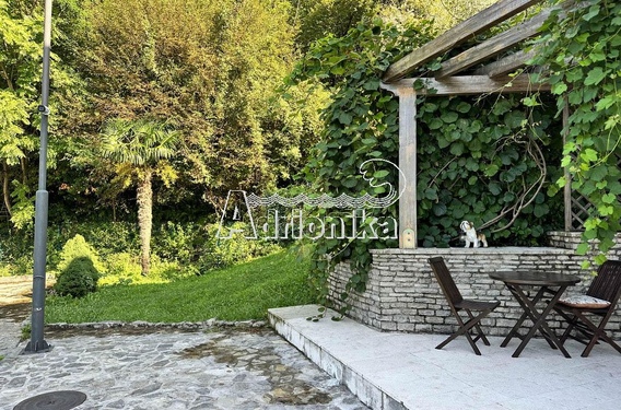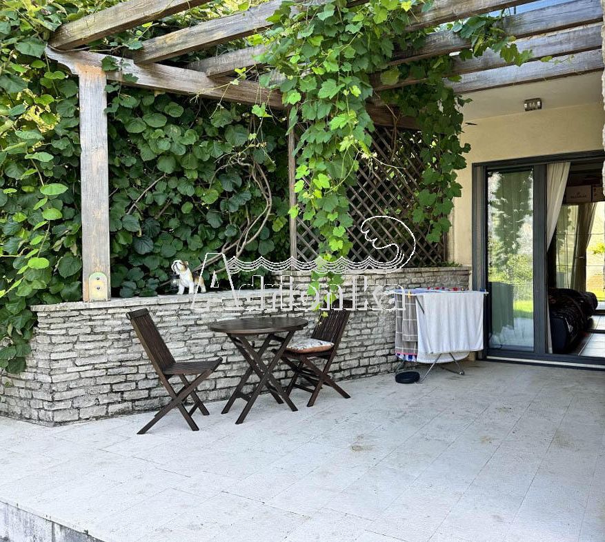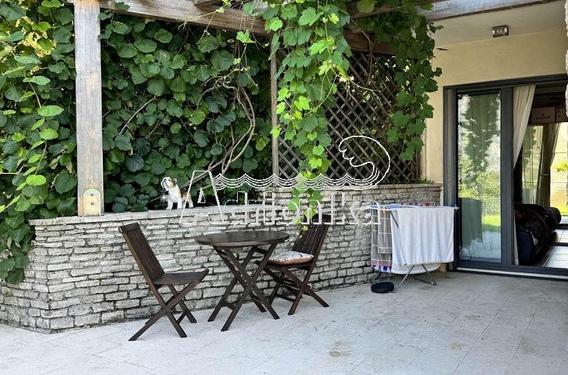 Перед входом находится терраса с окружающим садом, которой пользуются владельцы квартиры.