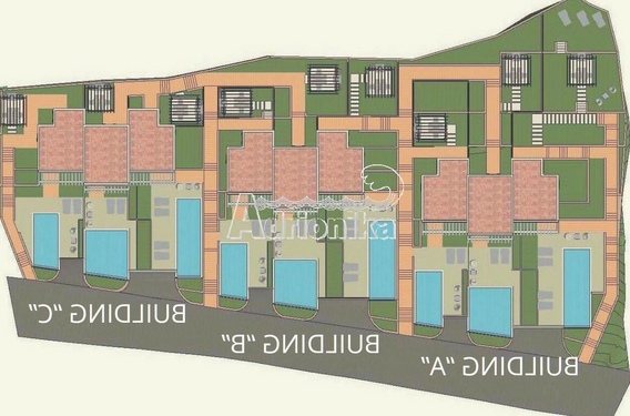 Комплекс состоит из 9 таунхаусов, разделенных на 3 здания, 3 таунхауса в каждом здании.