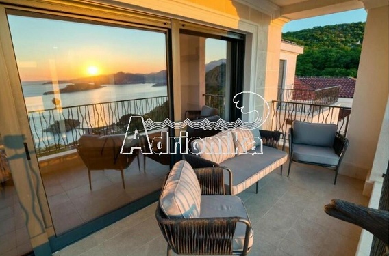 Из гостиной есть выход на террасу с панорамным видом на остров Святой Стефан и Будванскую ривьеру.