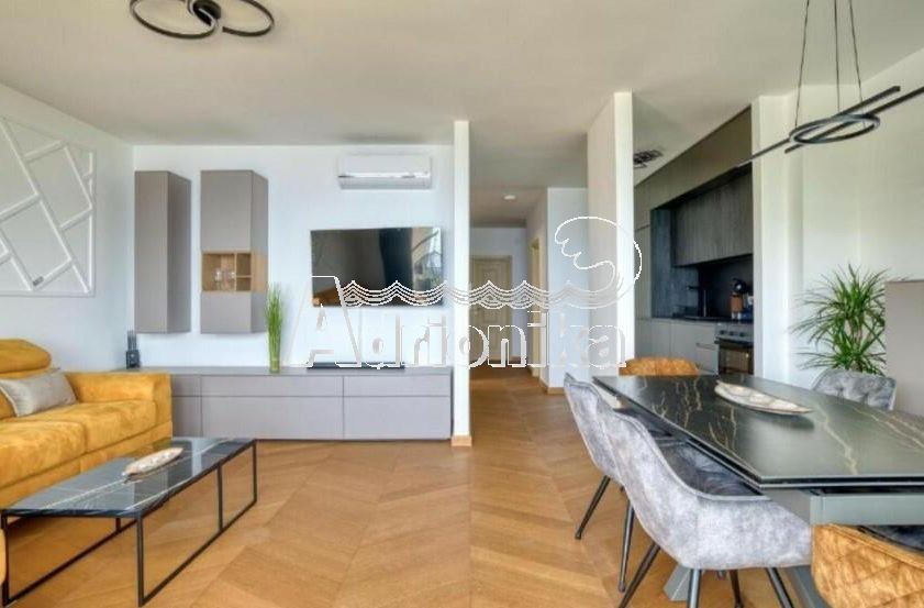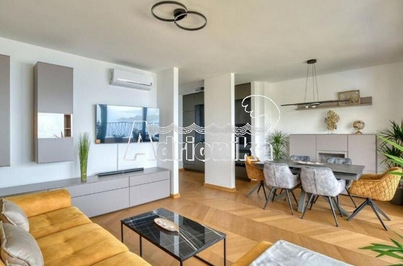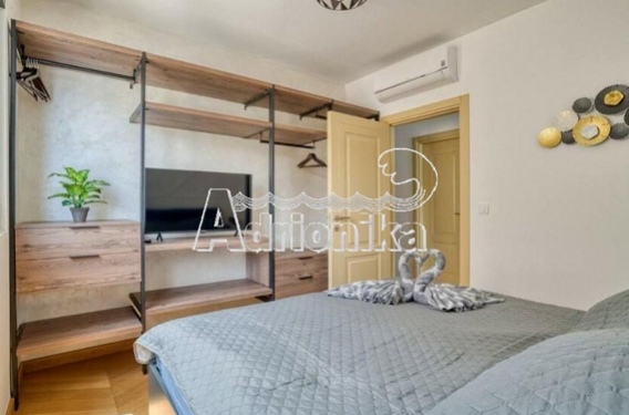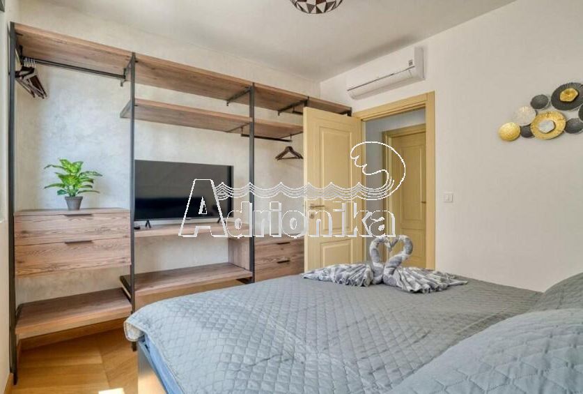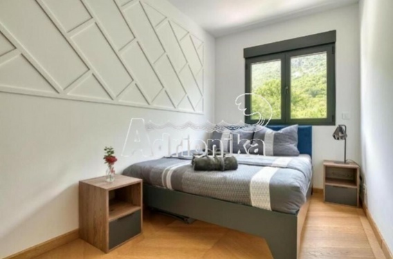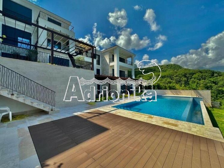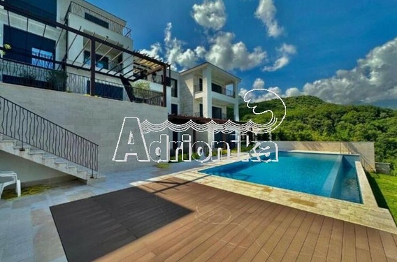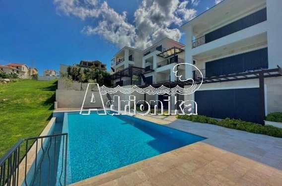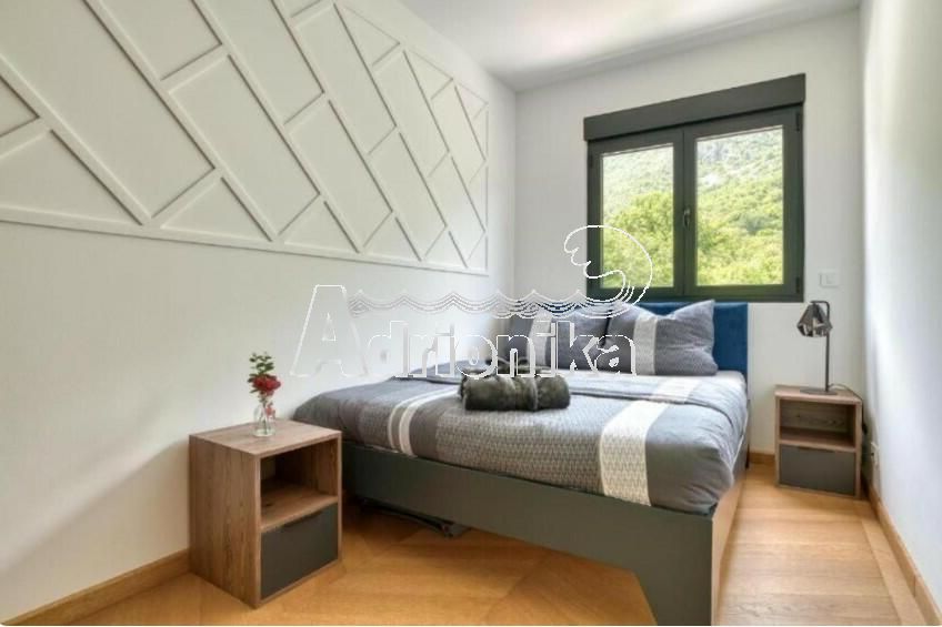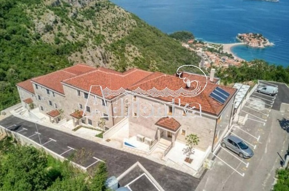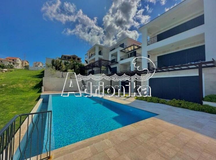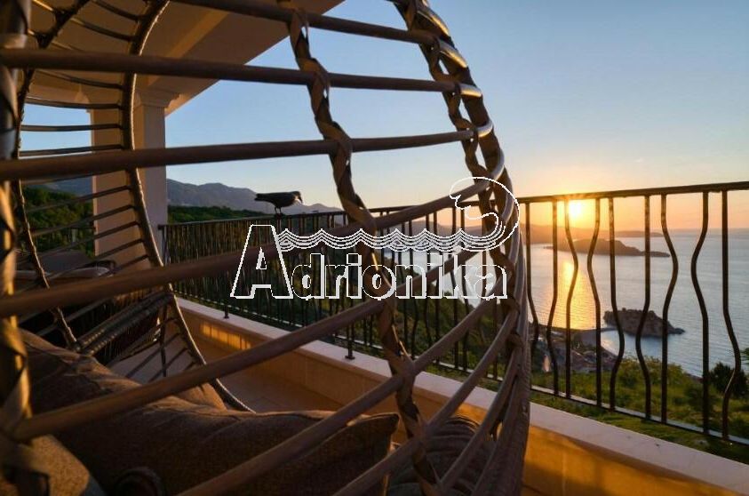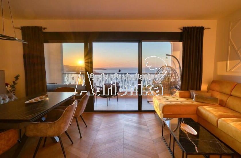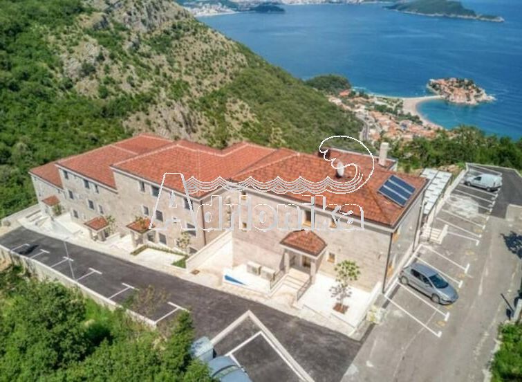 Продается полностью меблированная четырехкомнатная квартира в комплексе с бассейном и панорамным видом на Св. Стефан, Близикуће.