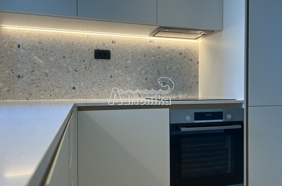 Эта элегантная квартира с двумя спальнями отличается продуманной планировкой и включает две просторные спальни, основную ванную комнату и гостевой санузел. Просторная гостиная с кухней открытого типа идеально подходит как для комфортного проживания, так и для приёма гостей, и имеет выход на частную террасу с частичным видом на море и окружающую зелень.