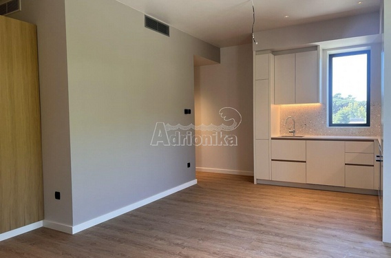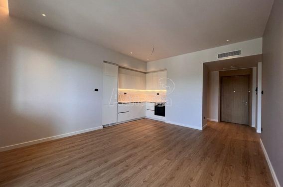 Студия состоит из ванной комнаты, открытого пространства с кухней и гостиной, а также террасы.