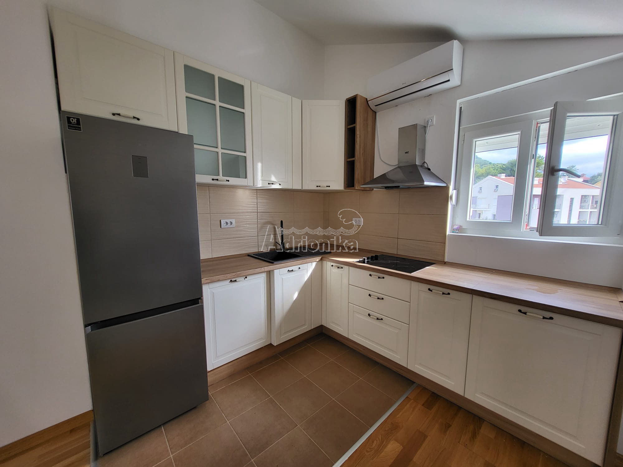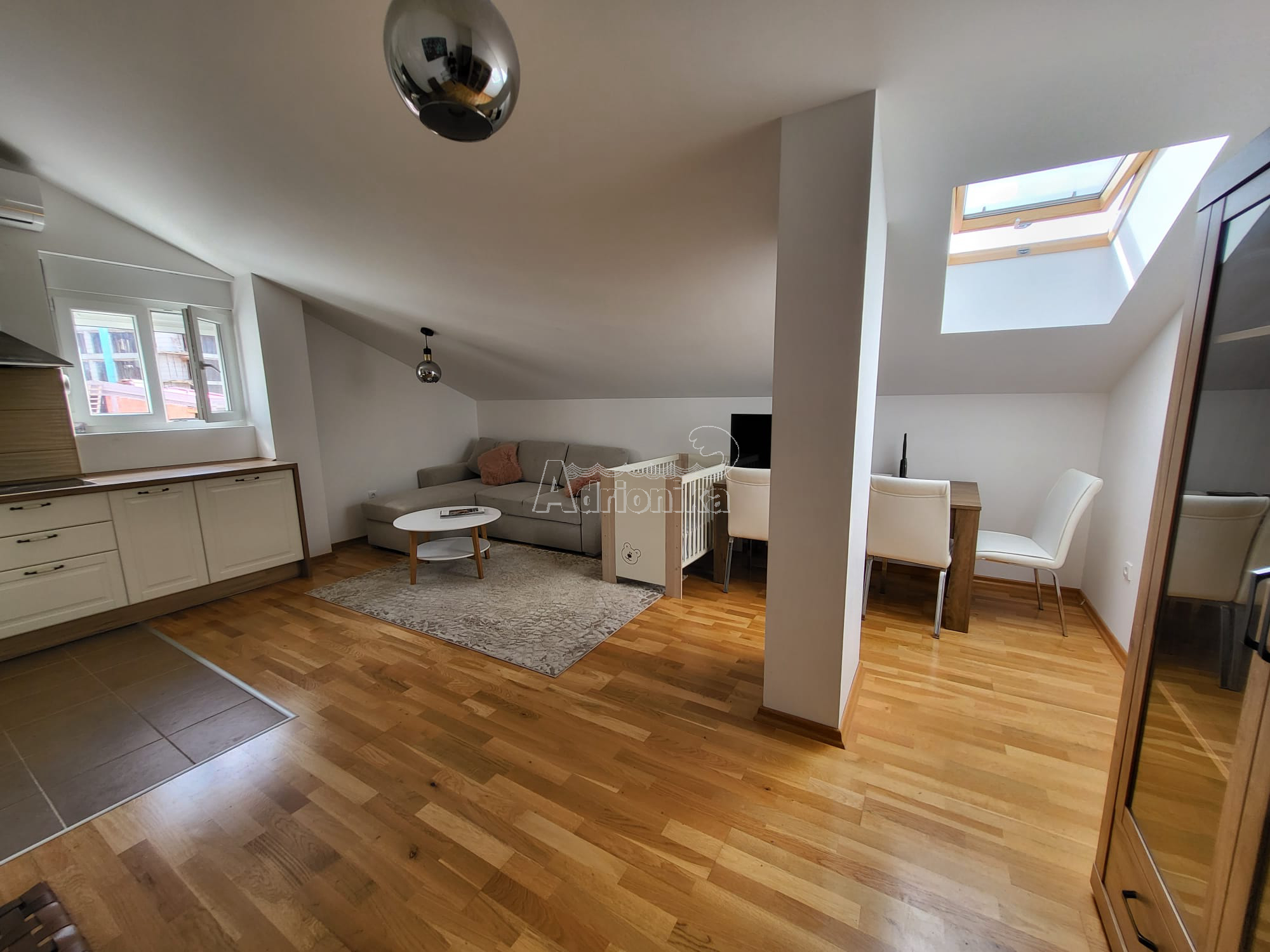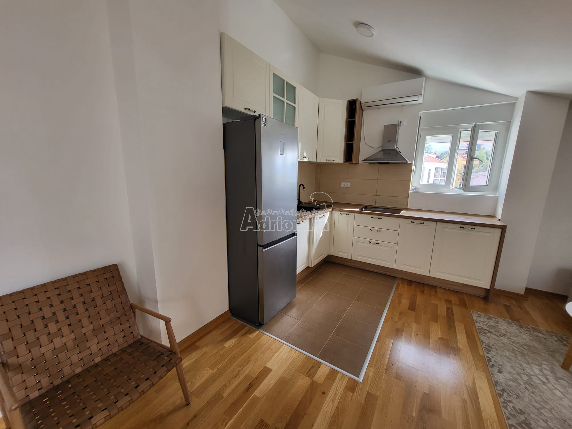 Продается трехкомнатная квартира в Тивате, в тихом месте недалеко от моря. Квартира имеет площадь 60 м2 и расположена на верхнем этаже нового здания. Планировка квартиры: гостиная со столовой, совмещенная с открытой кухней, две спальни, санузел. Квартира меблирована и оборудована и продается со всей мебелью. Рядом со зданием есть общая парковка. В шаговой доступности от квартиры находятся магазины, кафе, рестораны, почта, автовокзал и все важные учреждения. Квартира находится всего в 700 м от моря.