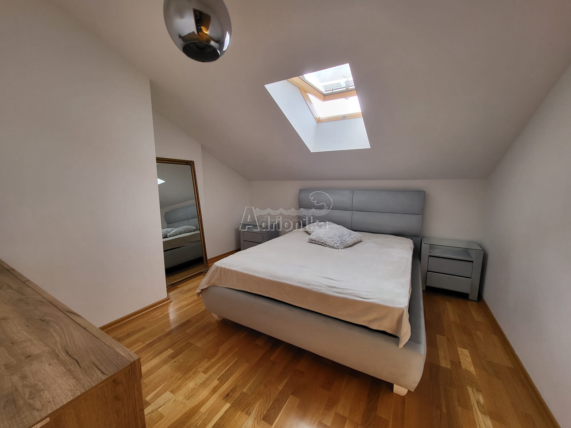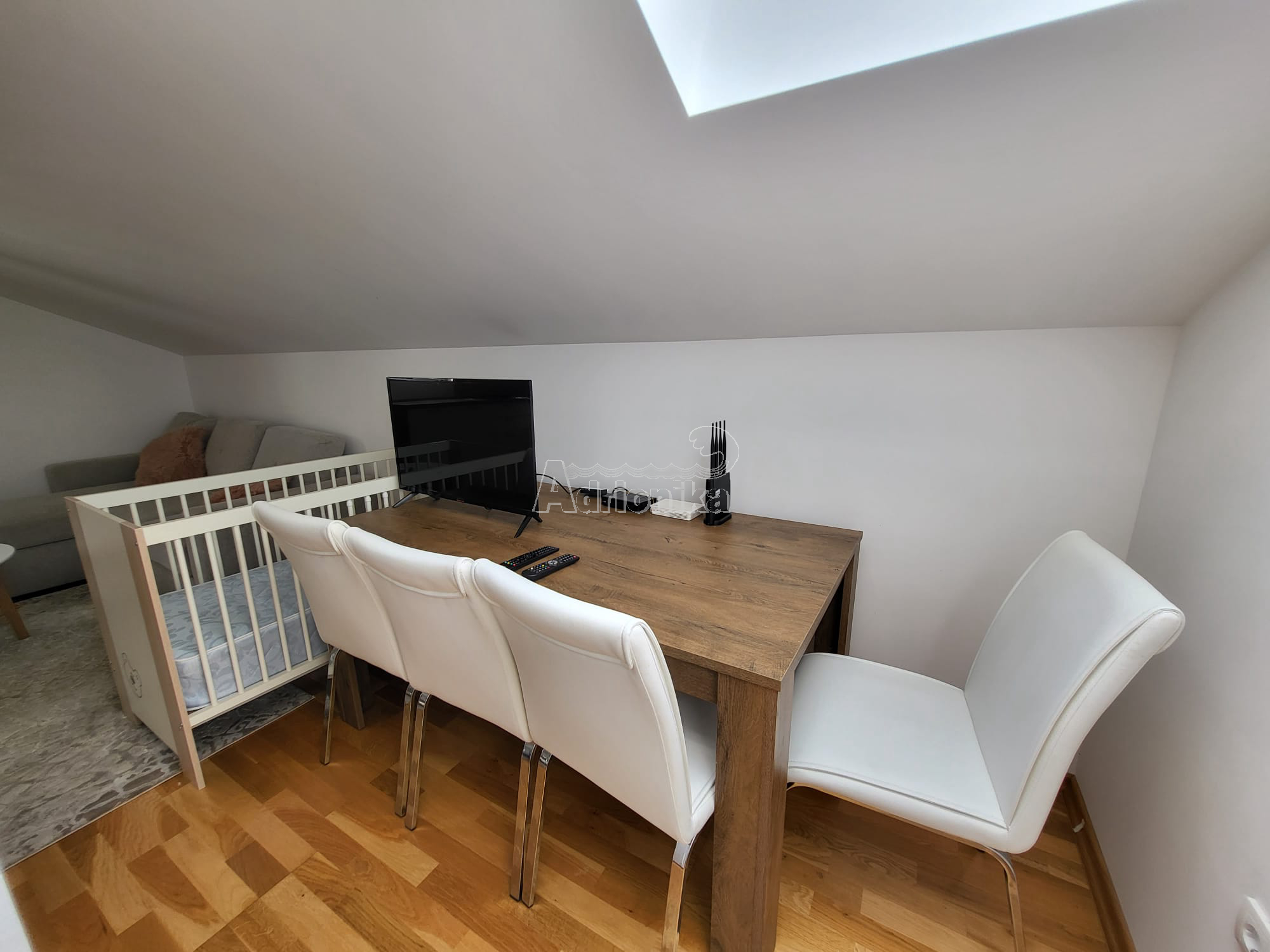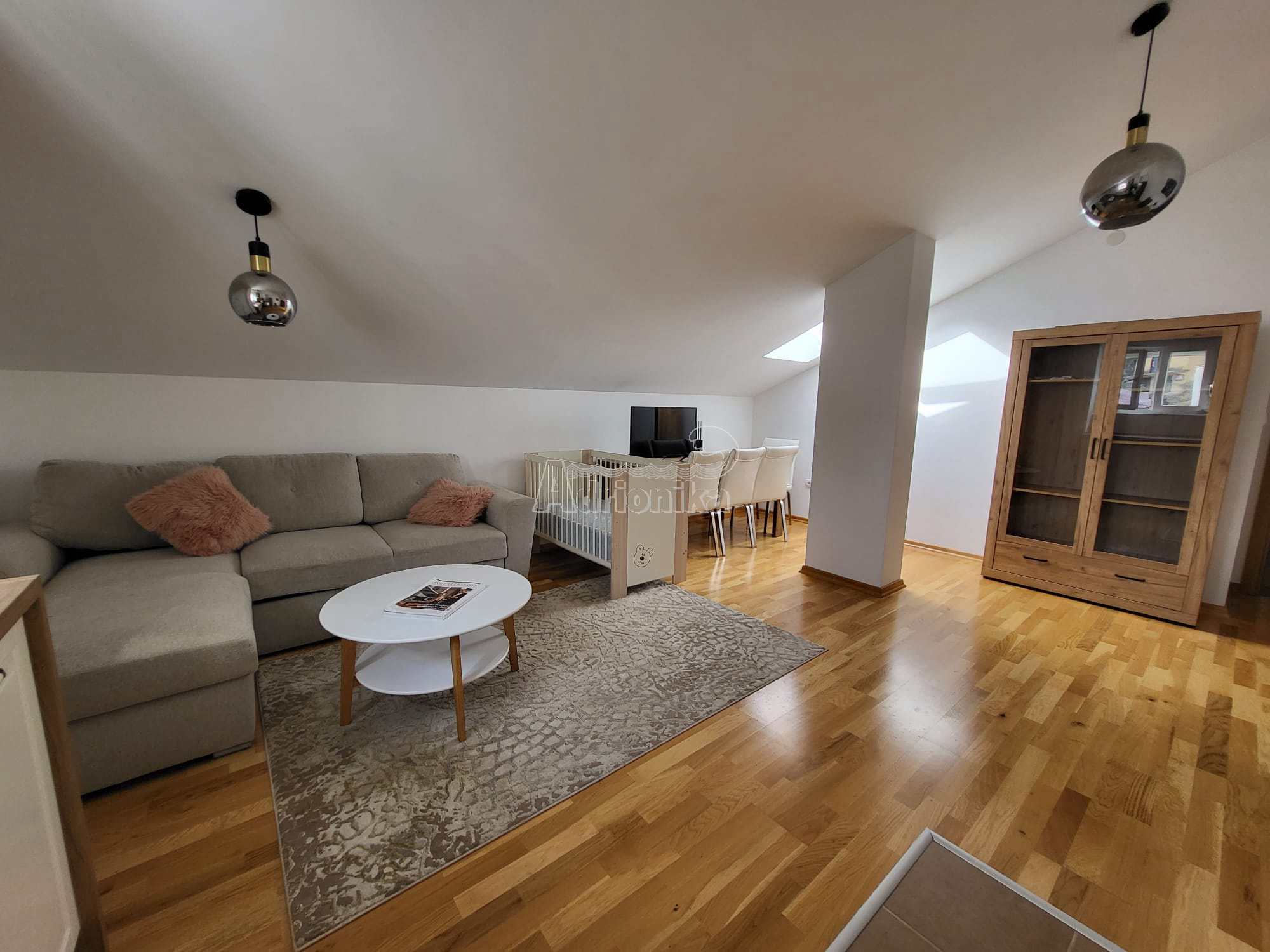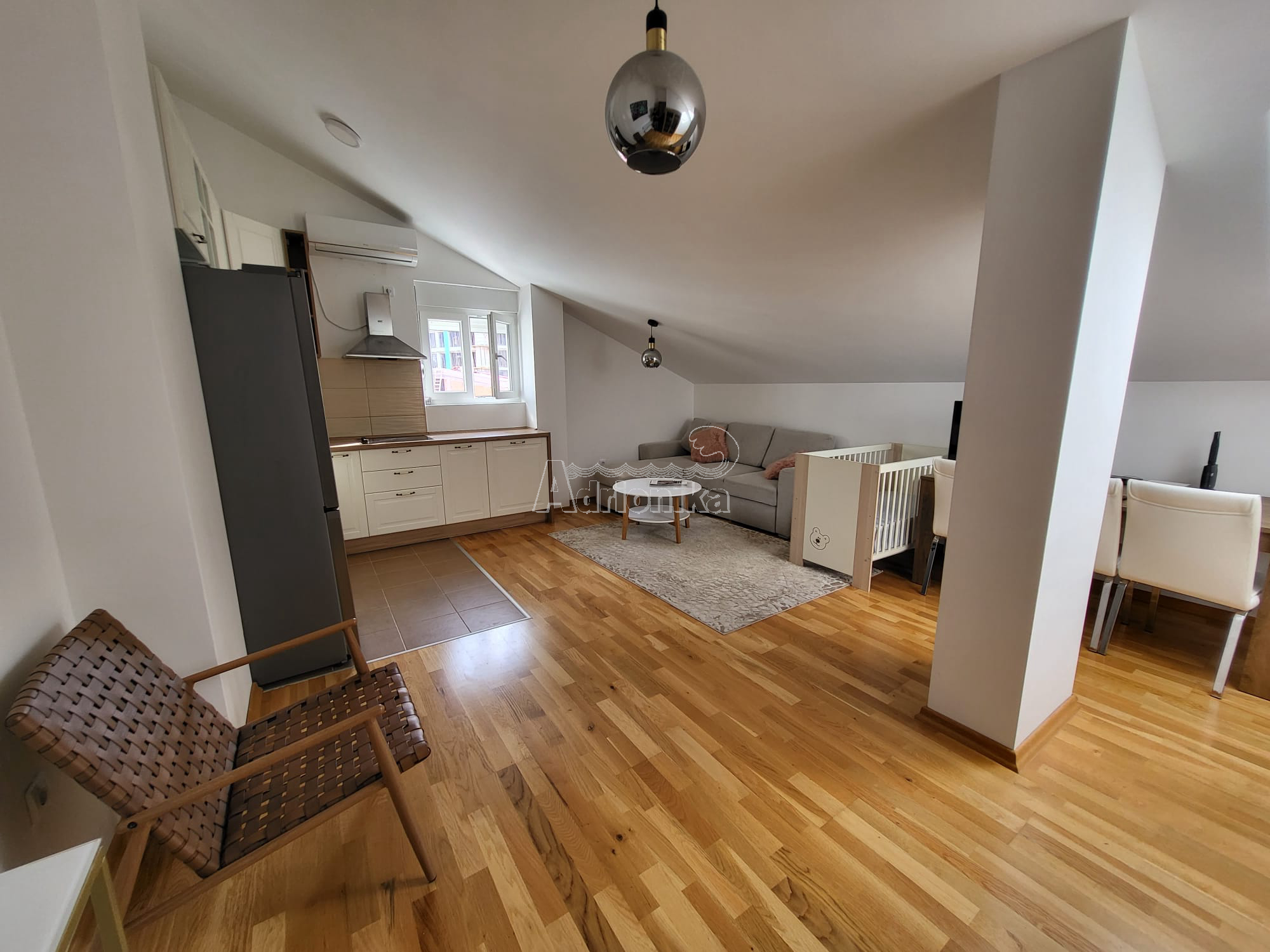 Продается трехкомнатная квартира в Тивате, в тихом месте недалеко от моря. Квартира имеет площадь 60 м2 и расположена на верхнем этаже нового здания. Планировка квартиры: гостиная со столовой, совмещенная с открытой кухней, две спальни, санузел. Квартира меблирована и оборудована и продается со всей мебелью. Рядом со зданием есть общая парковка. В шаговой доступности от квартиры находятся магазины, кафе, рестораны, почта, автовокзал и все важные учреждения. Квартира находится всего в 700 м от моря.