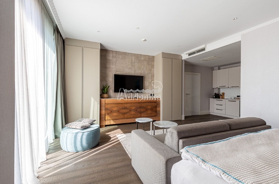 Роскошная квартира 44 м? в Радовичах с видом на море Продаётся стильная квартира площадью 44 м? в элитном жилом комплексе в Радовичах. Апартаменты расположены в современном здании с первоклассной инфраструктурой и захватывающим видом на Адриатическое море. Основные преимущества: Просторная планировка – светлая гостиная, объединённая с кухонной зоной, уютная спальня и современная ванная комната. Панорамные окна и терраса – наслаждайтесь великолепными закатами и морским бризом прямо из вашего дома. Премиальная отделка – высококачественные материалы, стильный интерьер и продуманный дизайн. Удобства комплекса – бассейн, тренажёрный зал, спа-зона, охрана, парковка. Отличная локация – тишина и уединение в сочетании с удобным доступом к пляжам, ресторанам и магазинам. Идеальный вариант для комфортного проживания или инвестиции в элитную недвижимость Черногории!