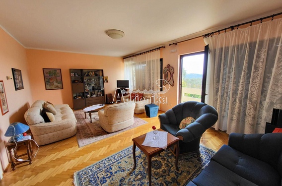 Площадь дома около 250м2 с двумя отдельными входами, каждая половина может функционировать как отдельная единица.