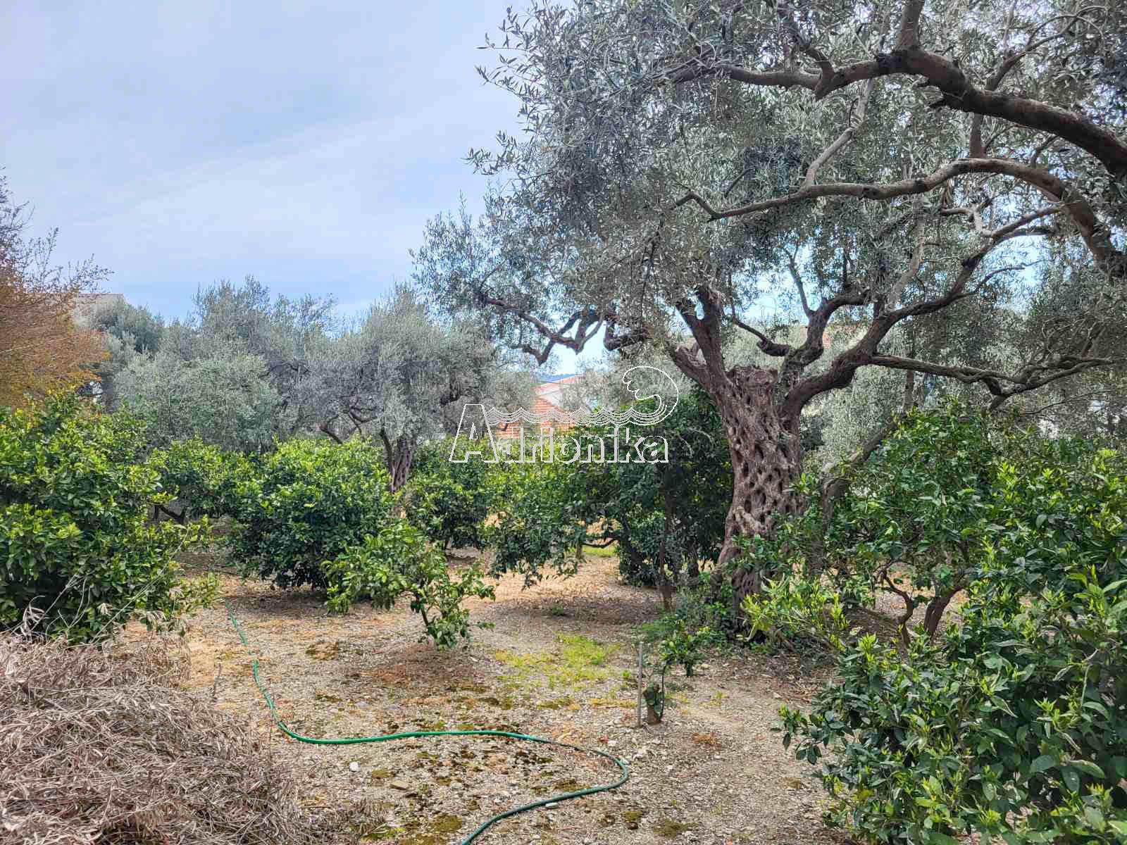 Участок каскадный, где находятся 40 оливковых деревьев, 80 цитрусовых (мандарины, апельсины, лимоны), киви, виноград, вишня, груши, абрикосы, 16 шиповников.
