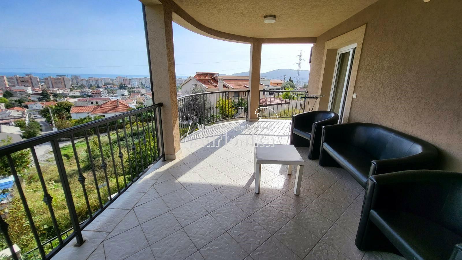 Вид с террасы простирается на город и море, что делает эту недвижимость идеальным местом для отдыха.