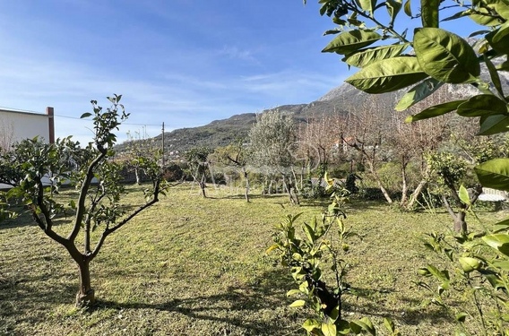 На участке растут фруктовые деревья, маслины.