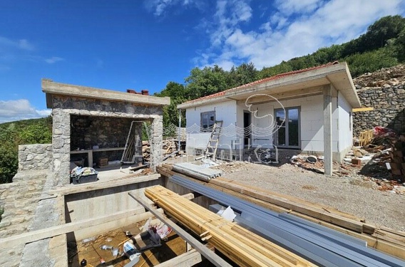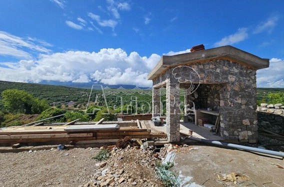 Дом продаётся с завершёнными основными строительными работами: готова крыша, несущая конструкция, внутренняя планировка, установлены водопровод и электрика, внешняя столярка, утеплён фасад с облицовкой камнем, готов бассейн, летняя кухня, резервуар для воды, парковка, мощные подпорные стены из камня, а также благоустроен зелёный двор перед и за домом.