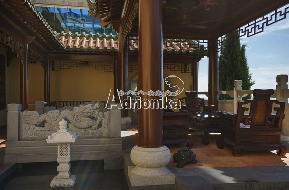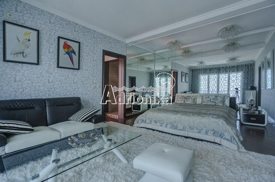 Вилла 1 - 581 м2, 5 уровней, 6 спален, 3 гостиные, 4 санузла, отдельная квартира для прислуги с кухней и санузлом, 2 террасы, китайская беседка, сауна, камин, большая парковка перед домом, уникальная дизайнерская мебель и предметы быта.